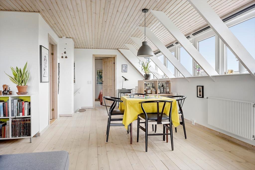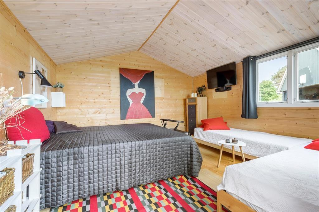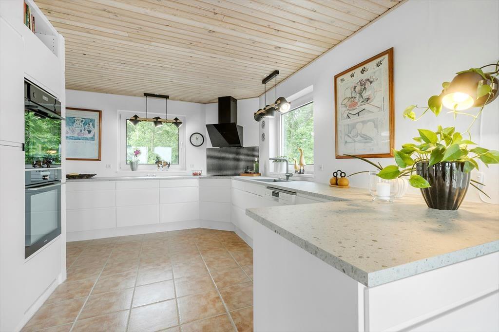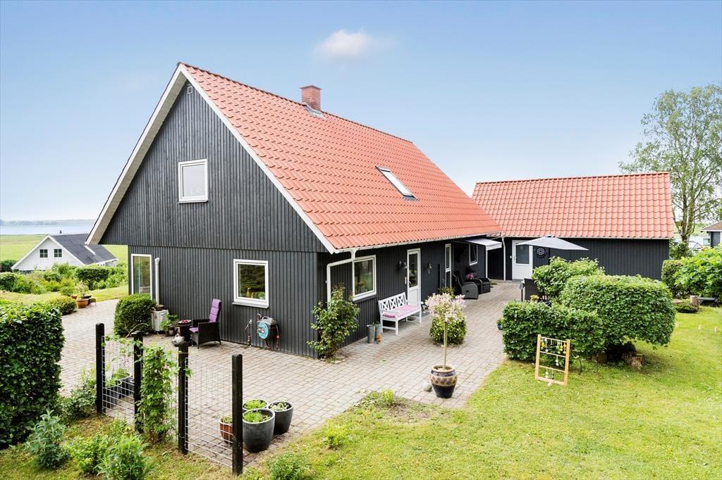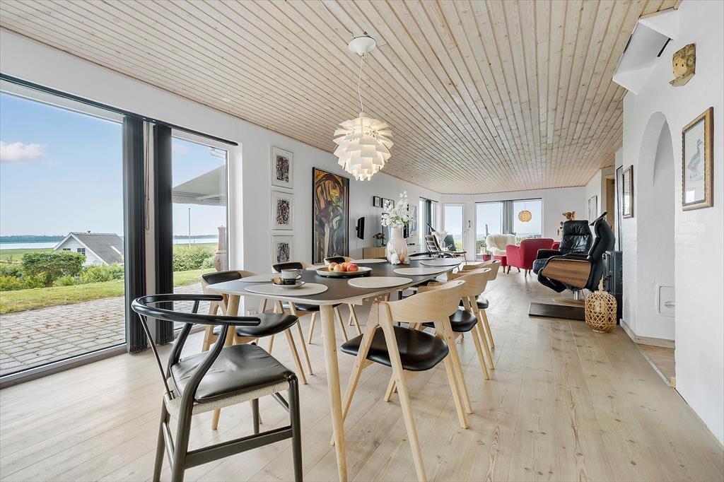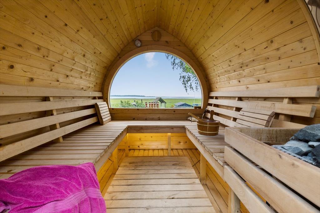 Velkommen indenfor: Indenfor fortsætter magien. Du træder ind i et skønt og gedigent hus, der emmer af komfort og er smagfuldt indrettet. Huset har 2 stuer. Nedenunder er stuen, der er i åben forbindelse med skøn spiseafdeling og det lækre køkken, der med 2 ovne og et hav af køkkenudstyr kalder på dine kulinariske evner. Her er brændeovn, forrygende udsigt over havet og terrassedør til det fantastiske udeliv, der venter dig både på terrassen og på hele grunden. Ovenpå finder du endnu en stue, perfekt til afslapning og samvær. Det er her du hælder en whisky i glasset, sætter en af husets LP`er på pladespilleren, lægger benene op og nyder den fantastiske udsigt og friheden til ”at kunne”. Når natten falder på, træder du ind i et af de herlige soveværelser, hvor gode senge venter på at give dig en god nats søvn. Eller måske trækker du over i det dejlige anneks, der nærmere er en lille hytte og ”nabo til” saunatønden og koldtvandskarret. Dejligt badeværelse både nedenunder og ovenpå. I dette hus har du kun to opgaver – Sørg for, at der er is i fryseren til børnene og vin i vinkøleskabet til de voksne.
