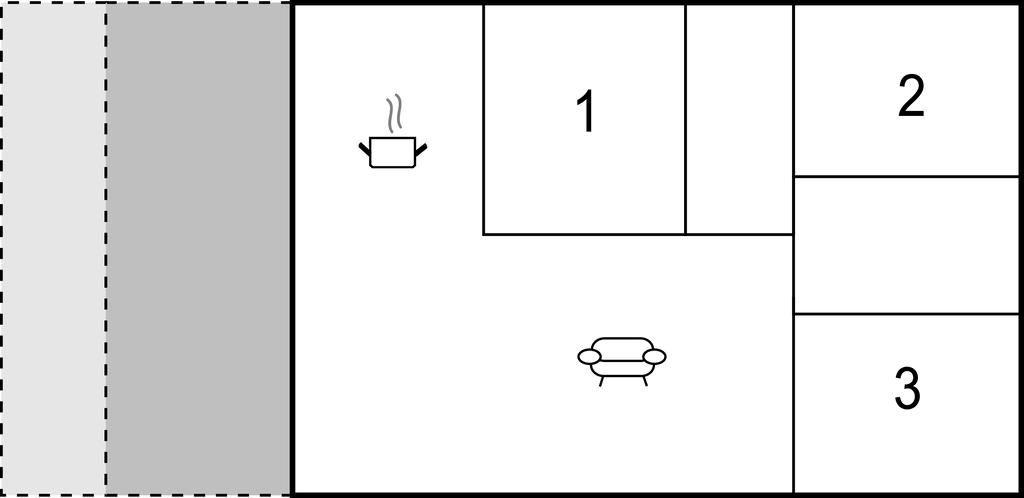 Komb. spisestue/køkken - 2 Sovepladser. (Enkeltseng(e)).