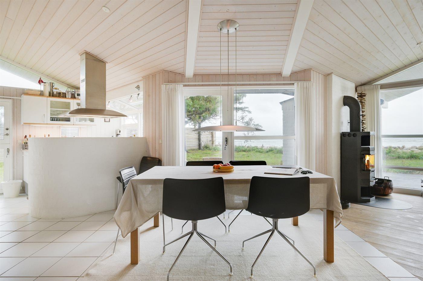 Køkkenet er udstyret med 1 køleskab. Der er 4 keramiske kogeplader, varmluftovn samt opvaskemaskine.