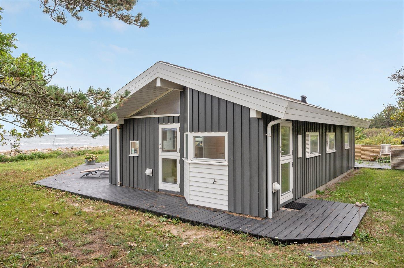 Ferieboligen er beliggende på en 3182 m² stor havegrund. Der er 25 m til havet. Der er en badebro i nærheden. Nærmeste forretning er beliggende i en afstand af 1250 m. Der er en golfbane i en afstand af 8000 m. Til ferieboligen hører 70 m² terrasseareal. Desuden er der 15 m² overdækket terrasse. Grill til rådighed. Der er carport til rådighed. Parkering ved ferieboligen.