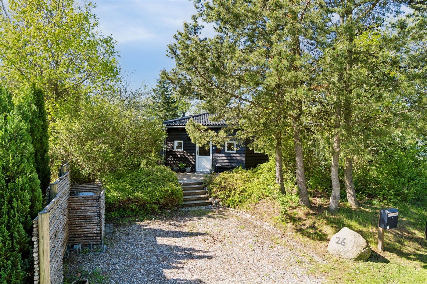 Ferieboligen er beliggende på en 1231 m² stor havegrund. Der er 400 m til havet. Nærmeste forretning er beliggende i en afstand af 2300 m. Til ferieboligen hører åbent terrasseareal. Legehus. Trampolin. Bålsted. Gasgrill står til rådighed. Parkering ved ferieboligen.