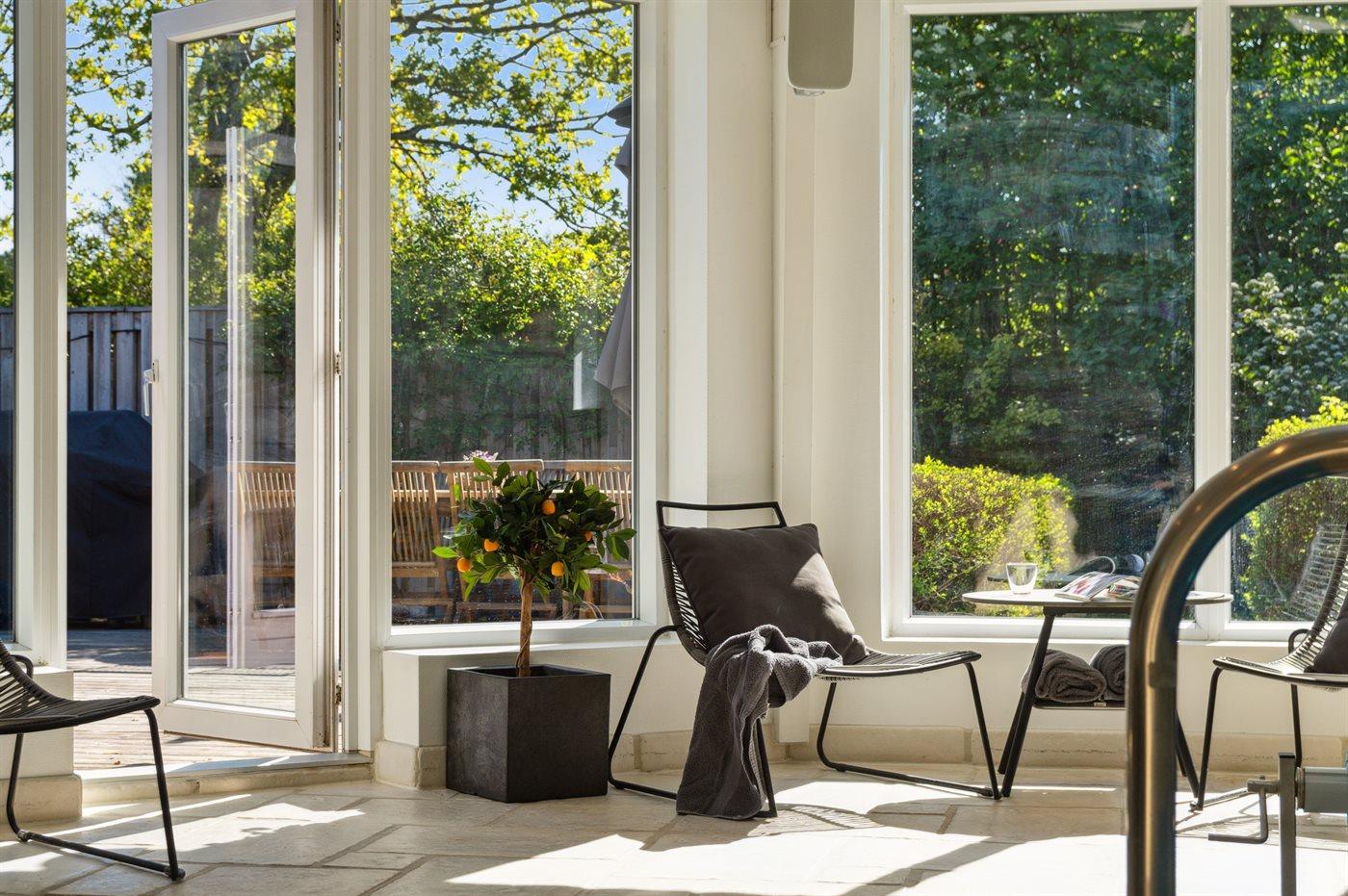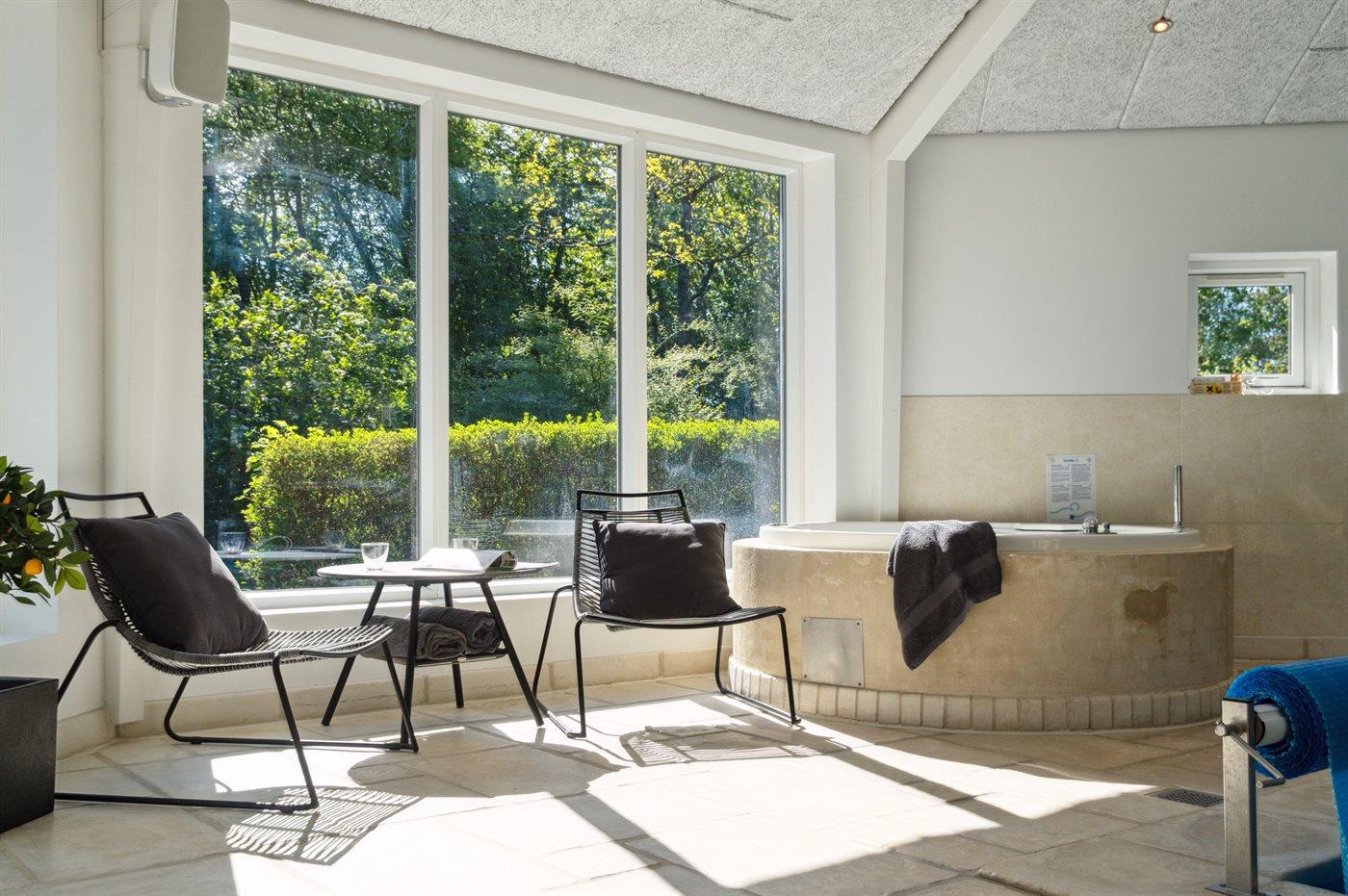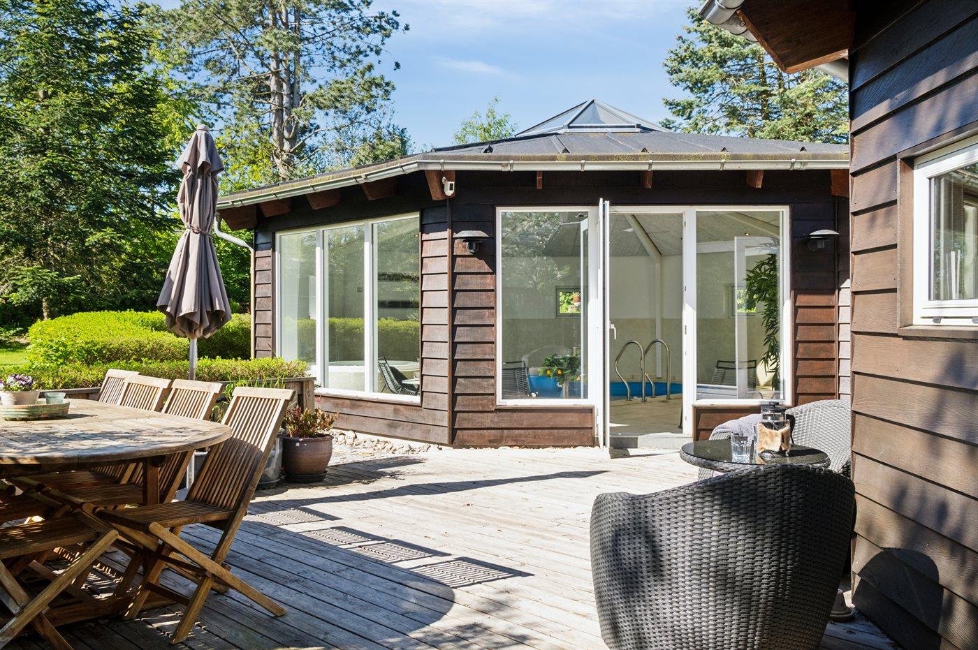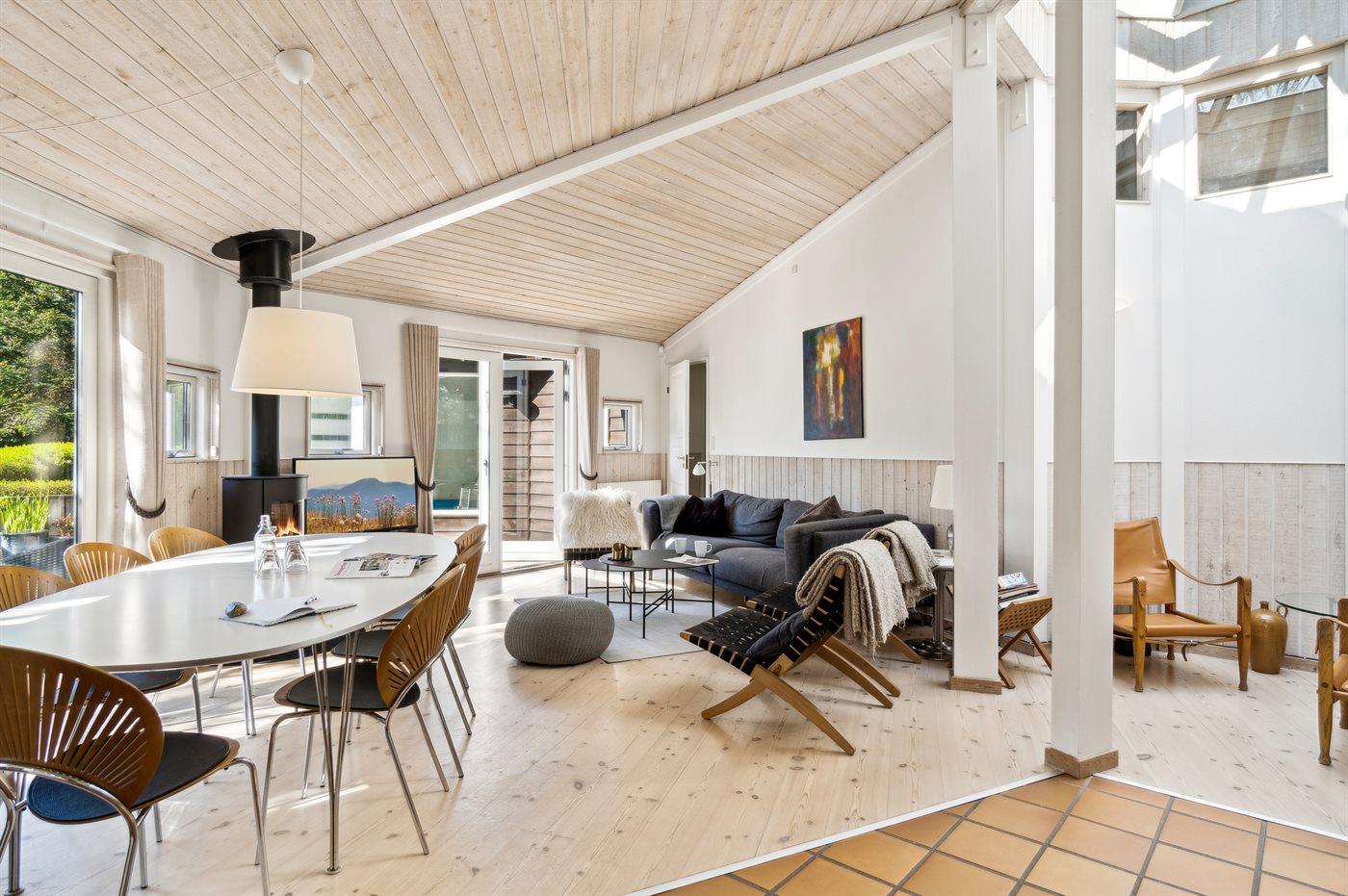 Arkitekttegnet sommerhus med indendørs pool, spabad og kort gåafstand til stranden ved Udsholt Strand.