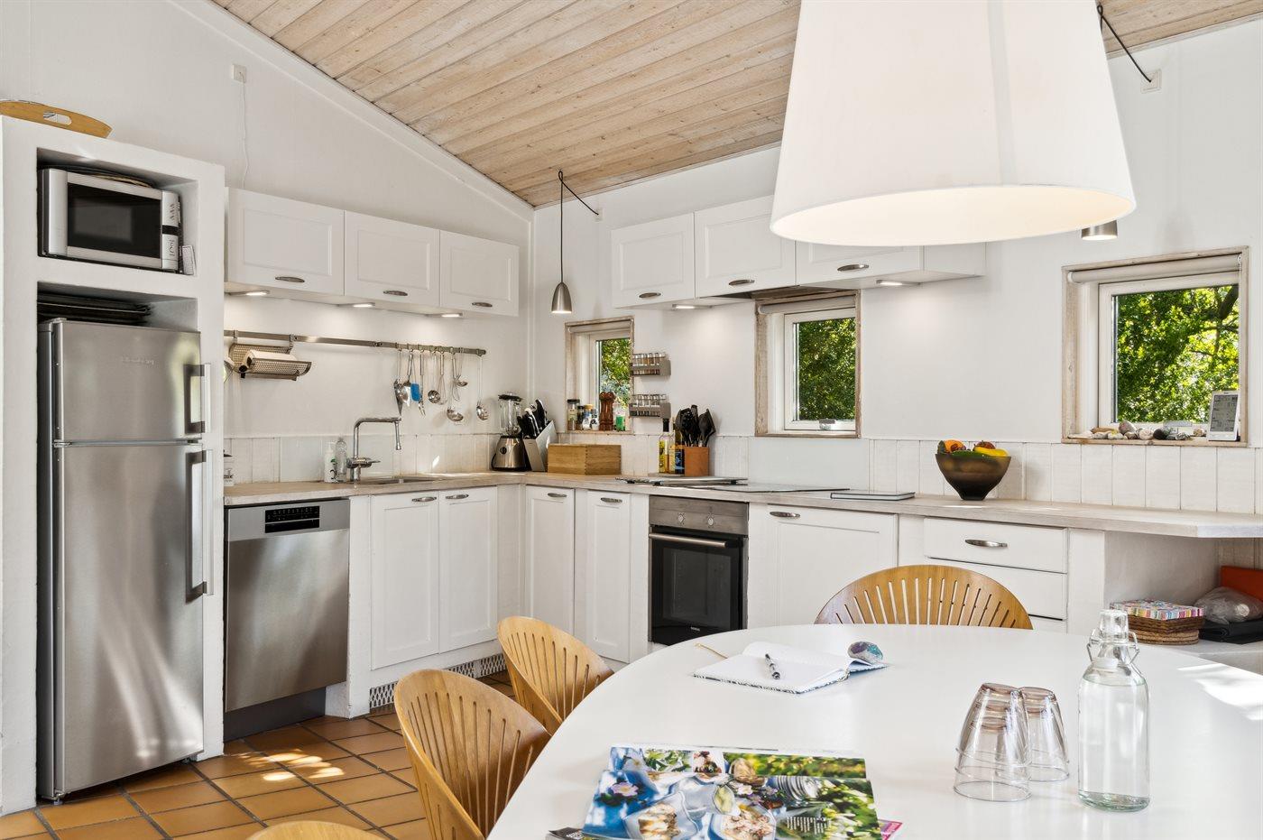 Køkkenet er udstyret med 1 køleskab. Der er 4 induktionskogeplader, varmluftovn, mikrobølgeovn samt opvaskemaskine.