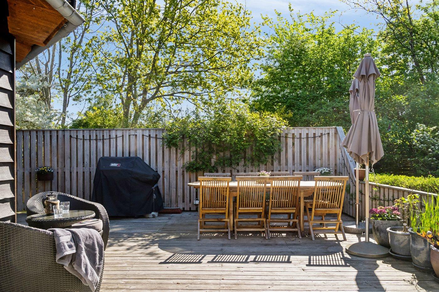 Udover de mange aktivitetsmuligheder i huset, er der selvfølgelig også mulighed for aktiviteter i haven, hvor der findes trampolin, legehus, et bålsted og selvfølgelig en gasgrill og store terrassearealer.