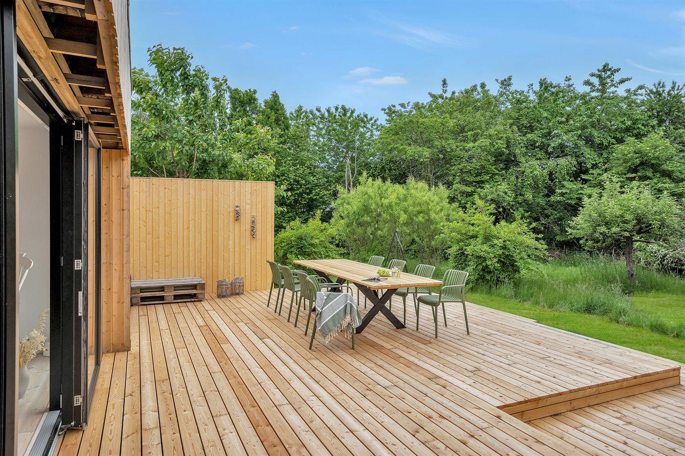 Totalrenoveret sommerhus i Udsholt Strand med store terrasseområder og moderne faciliteter.