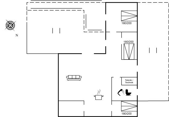 Køkkenet er udstyret med 1 køleskab. Der er 4 induktionskogeplader, varmluftovn samt opvaskemaskine.