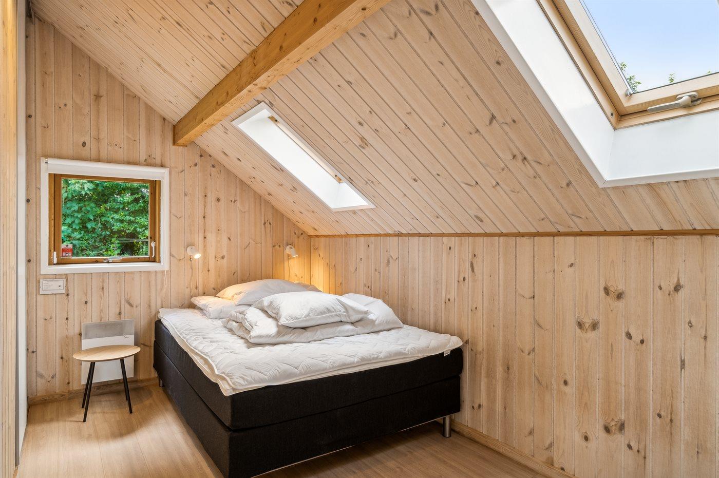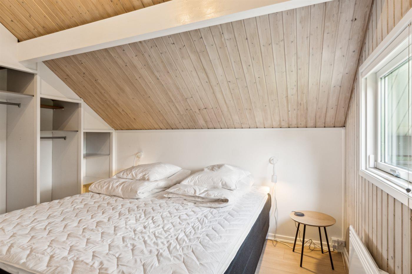 Der er i alt 3 soveværelser. Sovepladserne fordeler sig på: 6 sovepladser i dobbeltsenge. 1 soveplads i enkeltseng. Derudover er der 1 stk. barneseng.