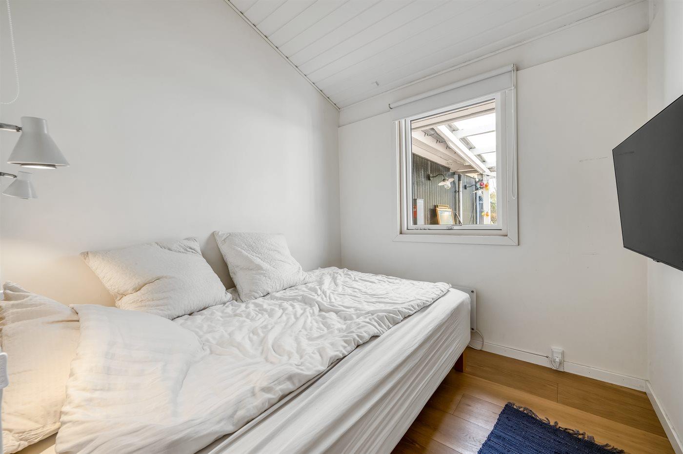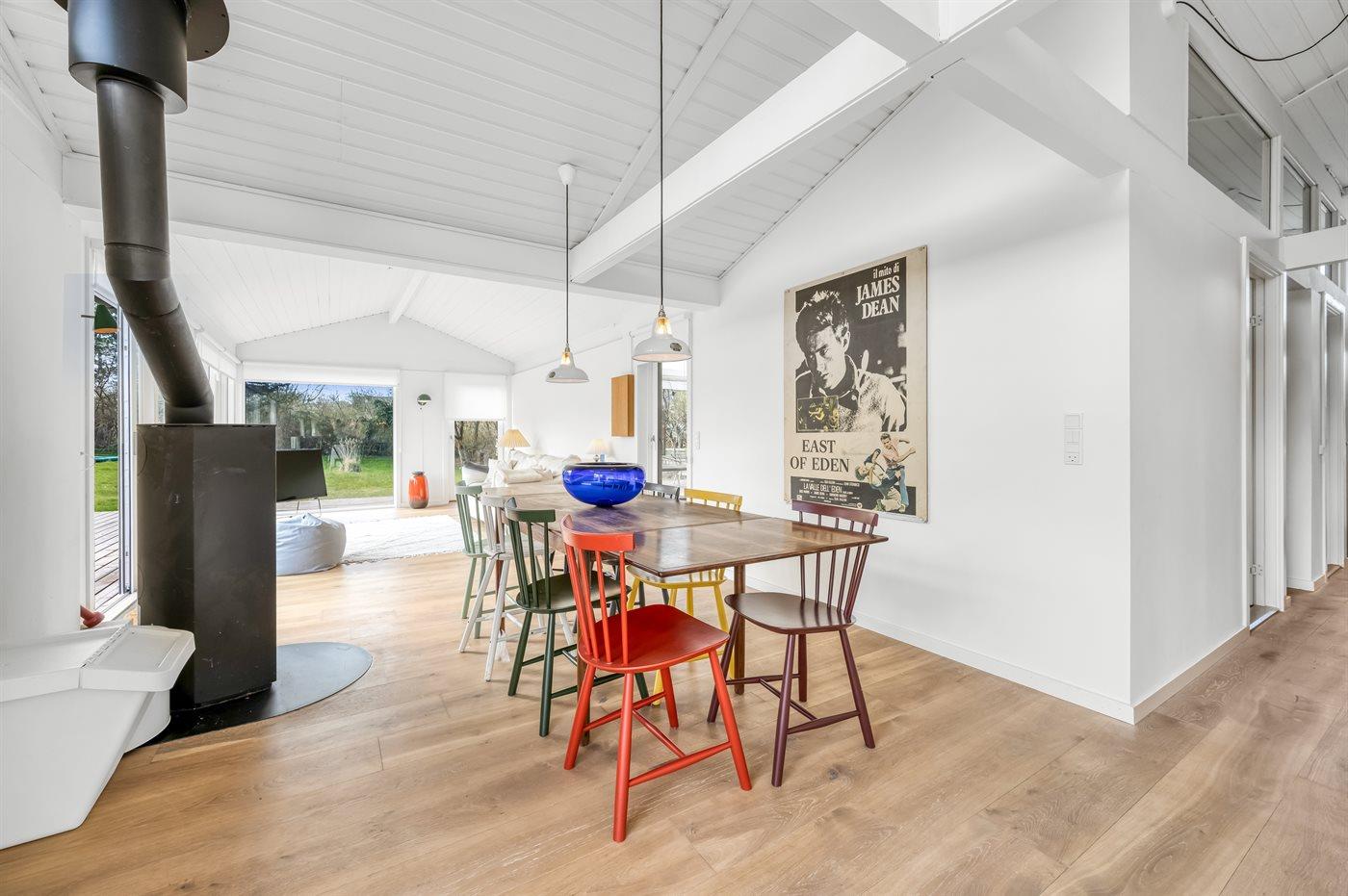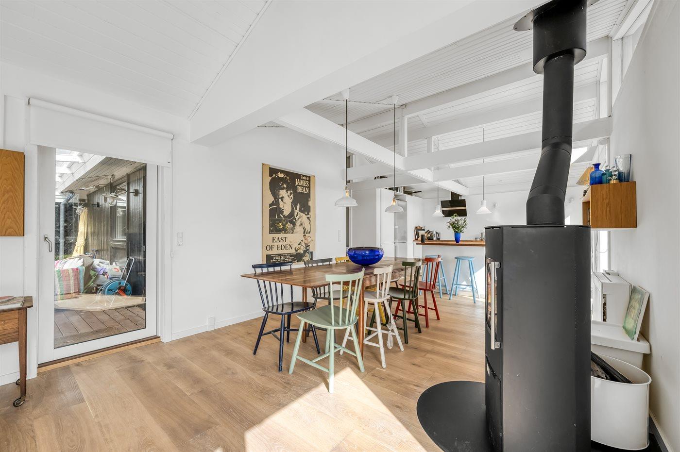 Dejligt sommerhus med plads til afslapning og hygge. Stort køkken-alrum med masser af lys og luft. Udsigt og adgang til haven – og den overdækkede terrasse. Tre soveværelser. Et dejligt badeværelse.