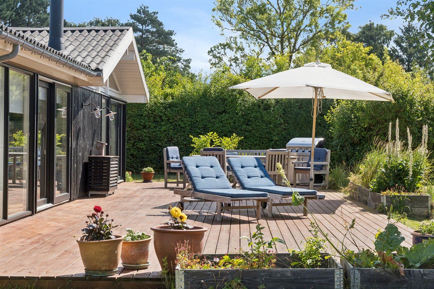 Hyggeligt sommerhus ved Udsholt Strand med have, terrasse og gode udflugtsmuligheder på Nordkysten.