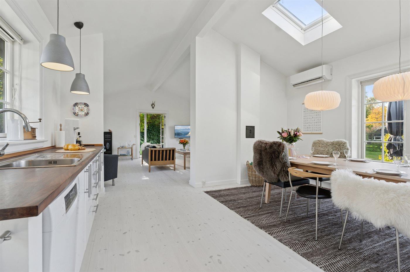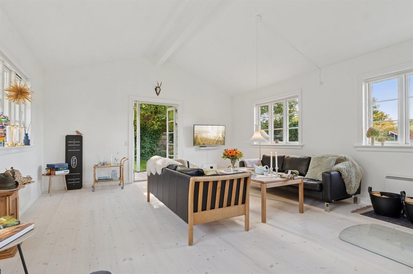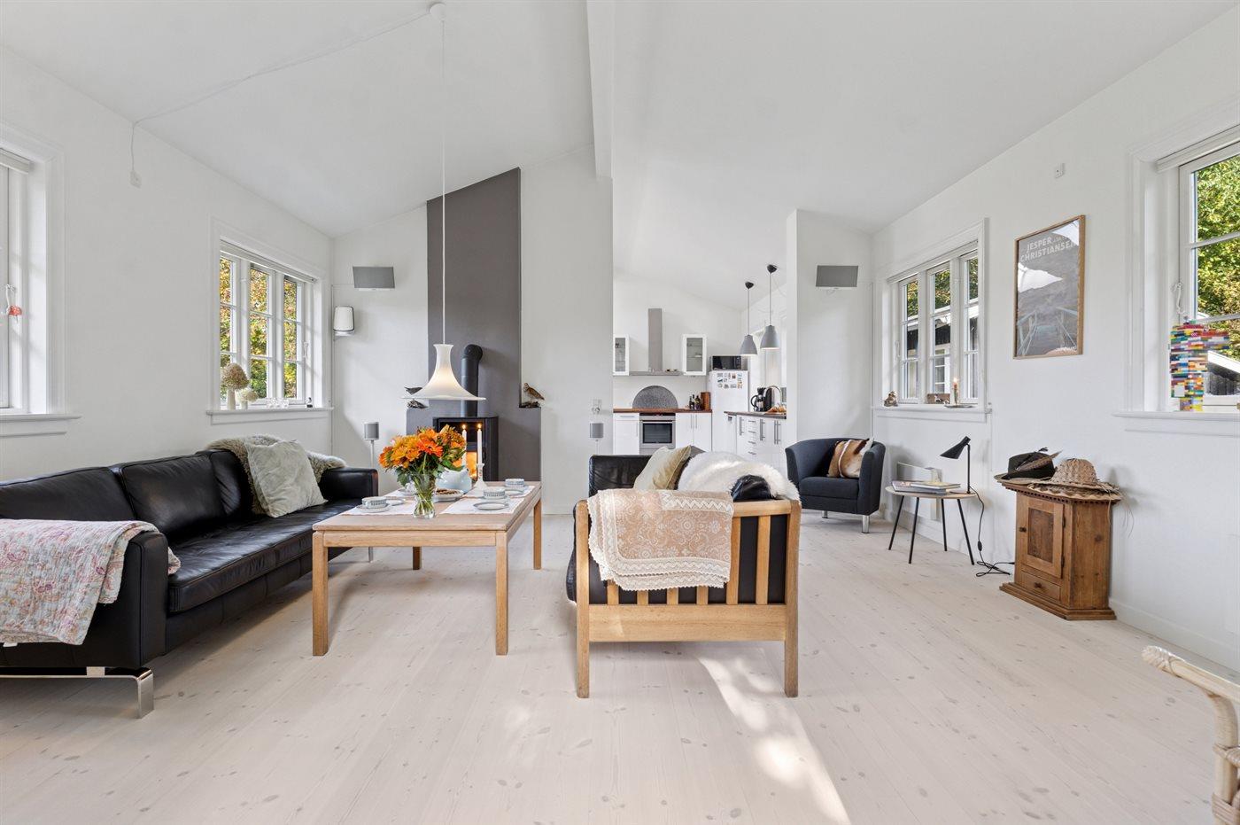 Tag en velfortjent pause fra hverdagen og nyd ferien i dette stilfulde, lyse sommerhus tæt på Kattegats kyst. Huset byder på en elegant og rolig atmosfære, skabt af det gennemgående hvide farvevalg, høje lofter, smagfuld indretning og de store vinduespartier, som lader dagslyset strømme ind. Her er der plads til at finde ro, lade op og nyde kvalitetstid med dem, I holder af.