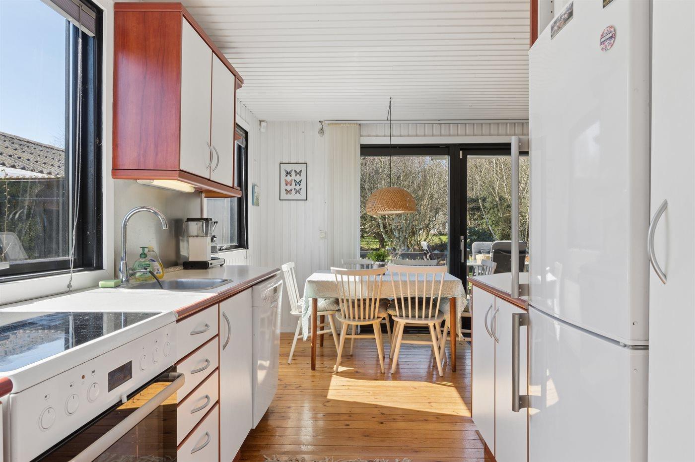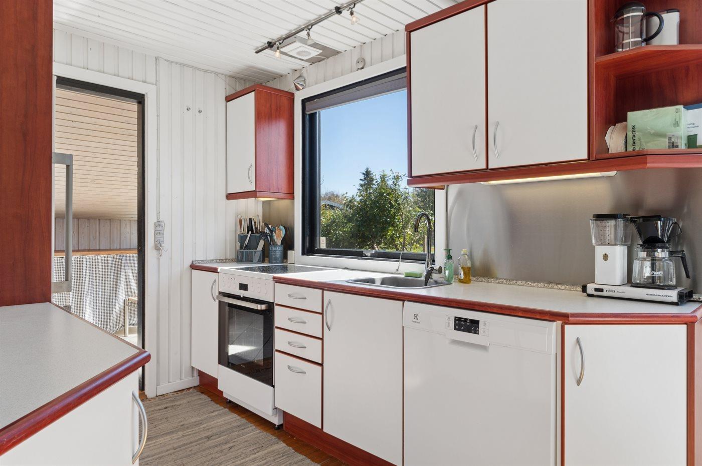 Køkkenet er udstyret med 1 køleskab. Der er 4 keramiske kogeplader, varmluftovn, mikrobølgeovn samt opvaskemaskine.