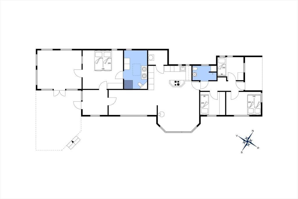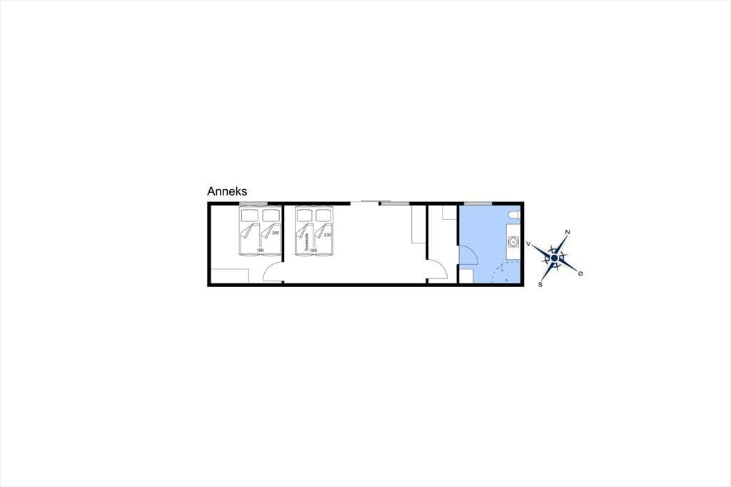 Sommerhusets sovepladser er fordelt på fire komfortable soveværelser i hovedhuset: Et stort soveværelse med dobbeltseng og privat badeværelse. To soveværelser med enkeltsenge. Et soveværelse med sovesofa og tv.
