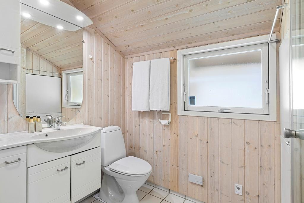 Der er også to badeværelser i hovedhuset, hvoraf det ene har en praktisk vaskemaskine og tørretumbler.