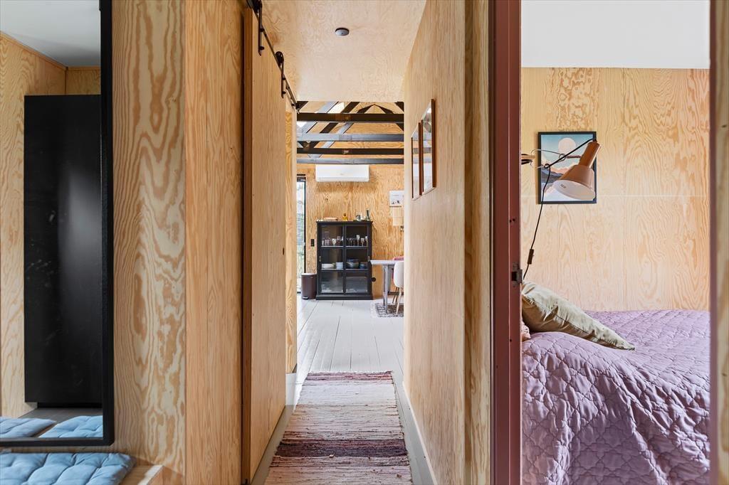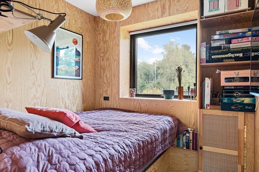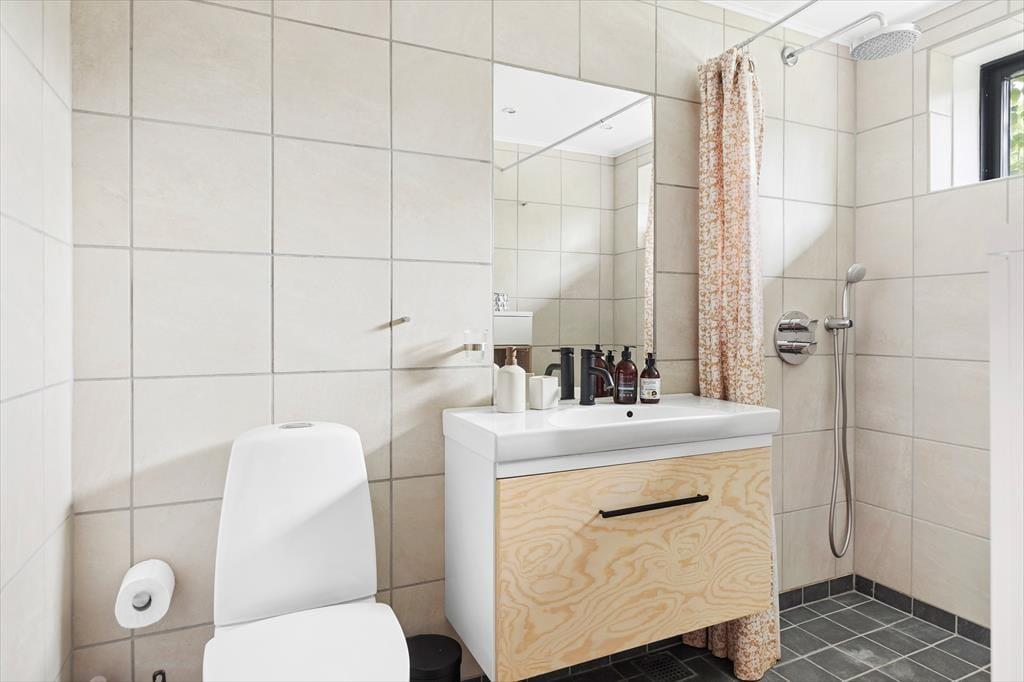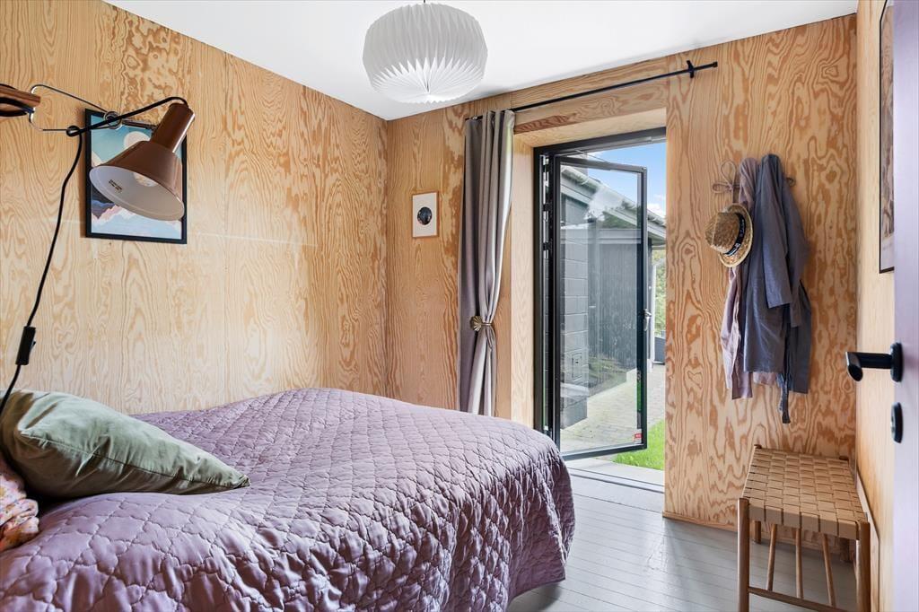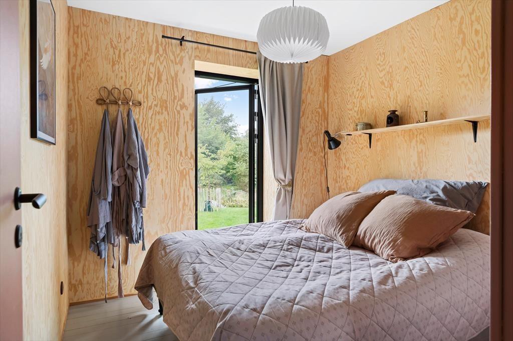 Når dagen slutter, kan I trække jer tilbage til de rolige soveværelser - to af dem med direkte udgang til terrassen. Det er perfekt til en rolig stund før sengetid og til at starte dagen med frisk luft, lyden af fuglesang og morgenkaffe i det fri. Huset fuldendes af et moderne badeværelse med bruseniche.