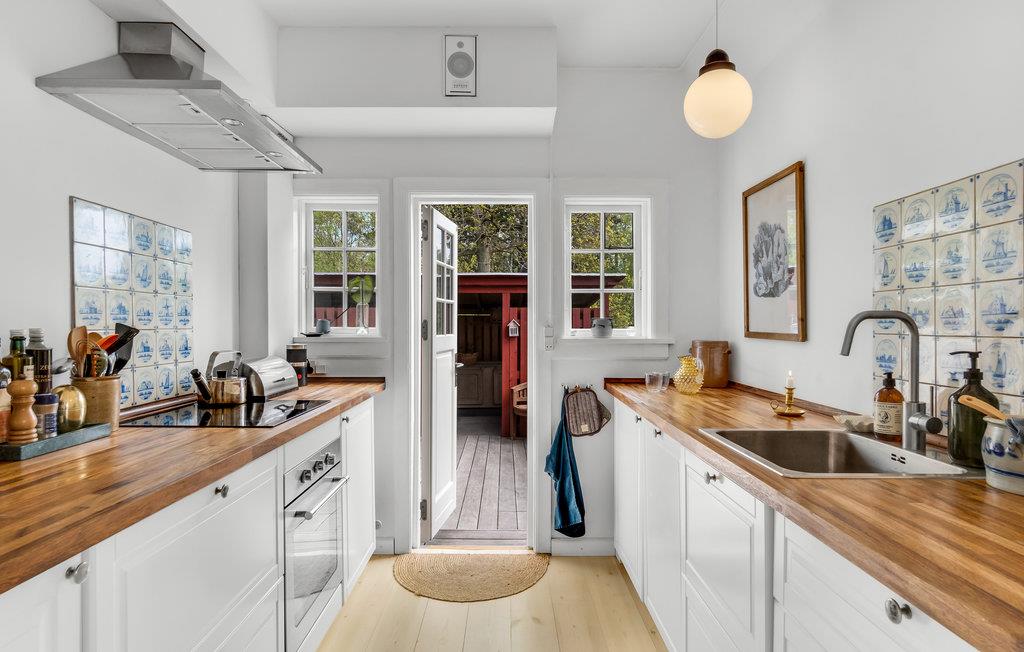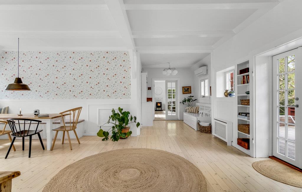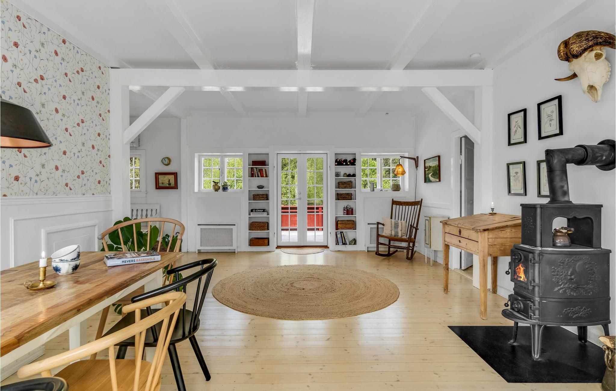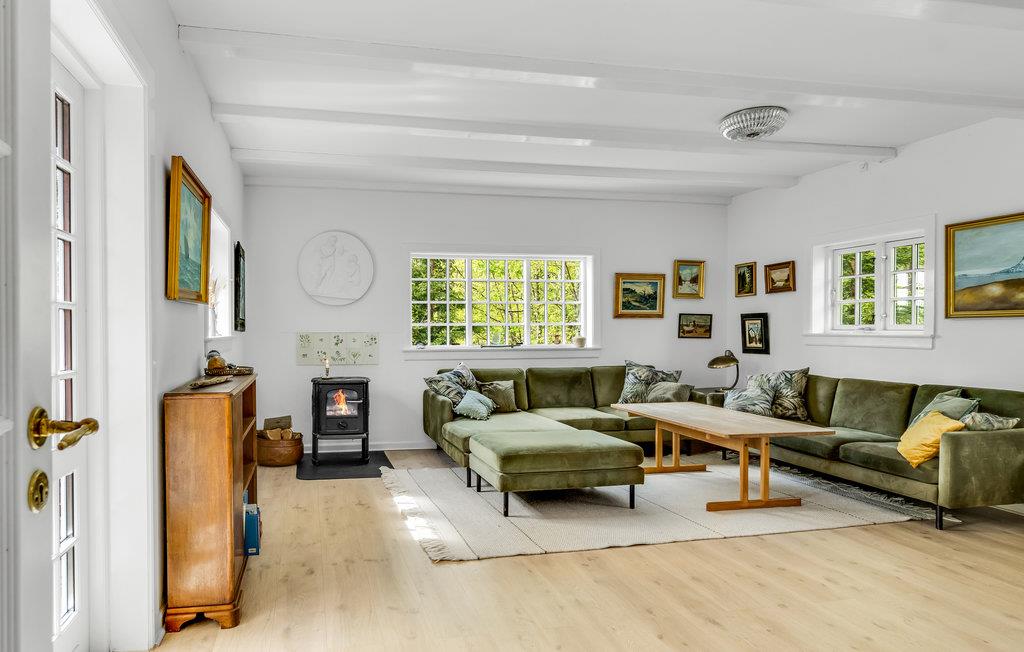 Dette særdeles hyggelige hus ligger i dejlige, skovklædte omgivelser i Nordsjælland kun få minutters gang fra stranden. Indvendigt fremtræder boligen varmt og indbydende med en vellykket kombination af originale og moderne elementer. Her er pæn kunst på væggene, farverige tapeter og masser af godt udstyr, der gør jeres feriehverdag til en leg. Efter en aktiv dag får I her den perfekte base, hvor I kan hvile benene i sofaen ved brændeovnen, smide en god film på tv'et eller spille brætspil til langt ud på aftenen.