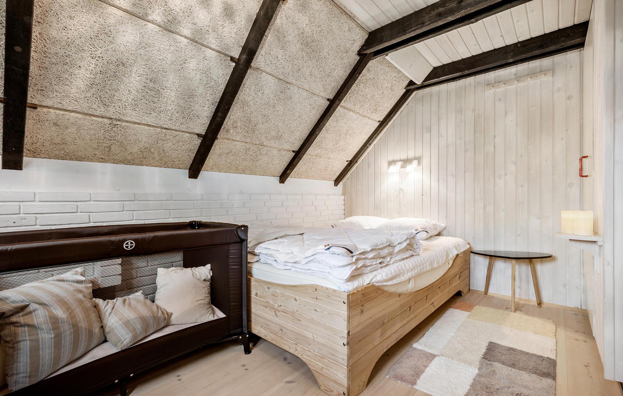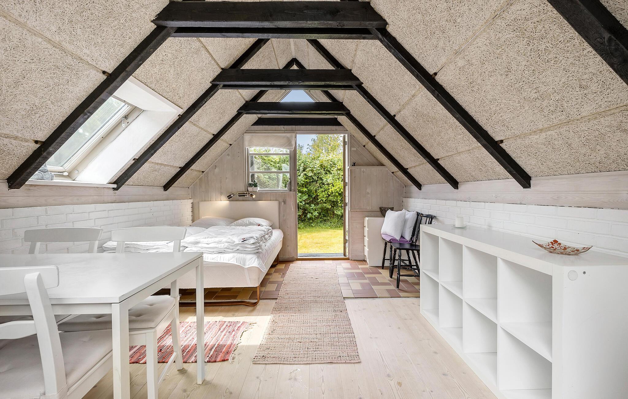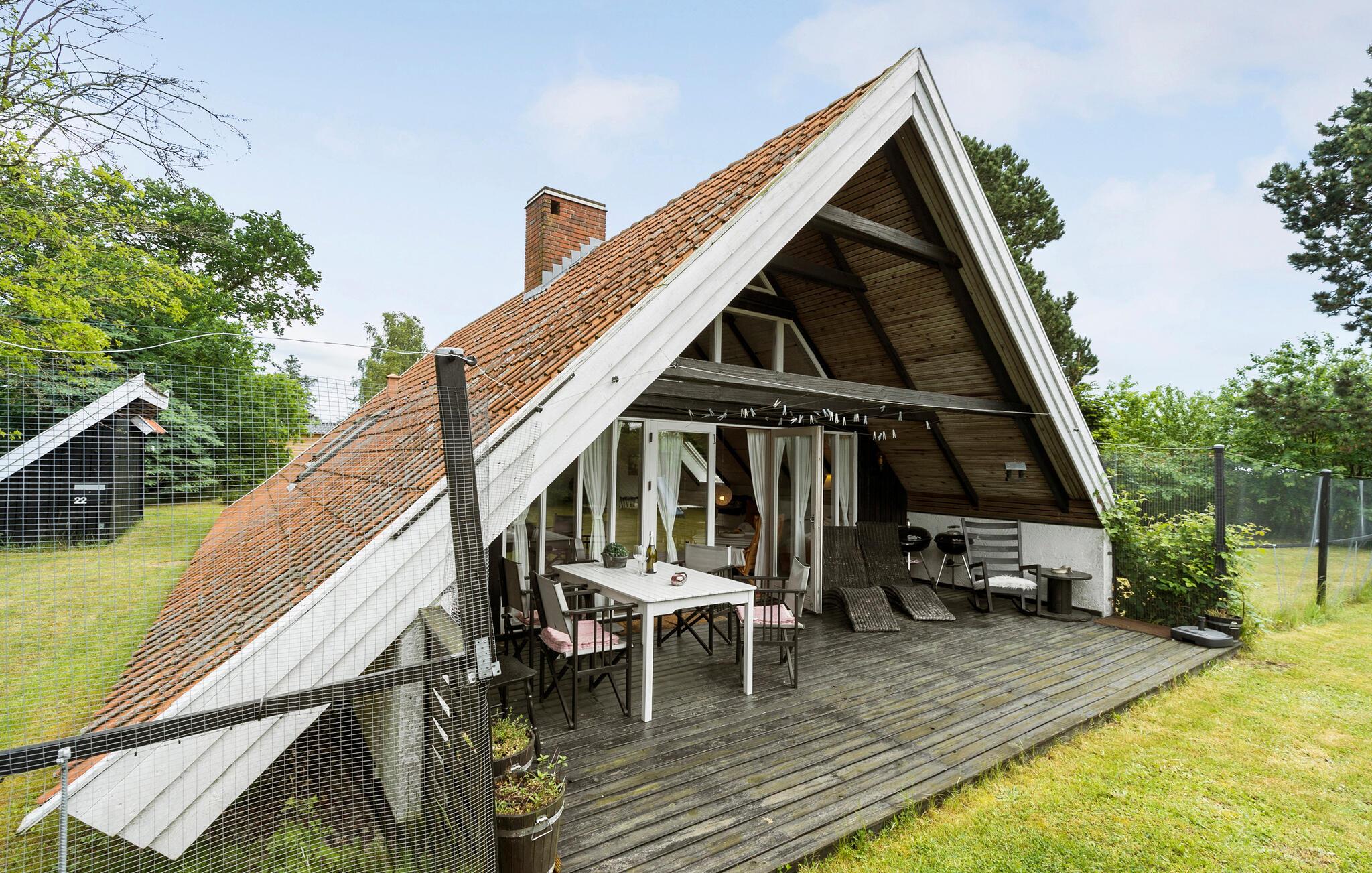Tag familien under armen og rejs til Nordsjælland, hvor I tæt på Udsholt Strand finder denne fine perle af en feriebolig. I bor i grønne, fredelige omgivelser, og her har I det helt rigtige valg, hvis I prioriterer fred, ro og hygge over komfort og luksus op ferien. Udover hovedhuset er der sovepladser i annekset, så I kan nyde lidt privatliv, når behovet måtte opstå. Indretningen fremtræder lyst og pænt med loft til kip og store vinduespartier, der giver stuen et lyst og luftigt udtryk og en fin udsigt til haven. Skulle vejret vise lidt tænder, kan I fyre op i brændeovnen og sætte jer godt til rette i sofaen med snacks, et sjovt brætspil eller en god film på tv'et til lyden af den knitrende ild.