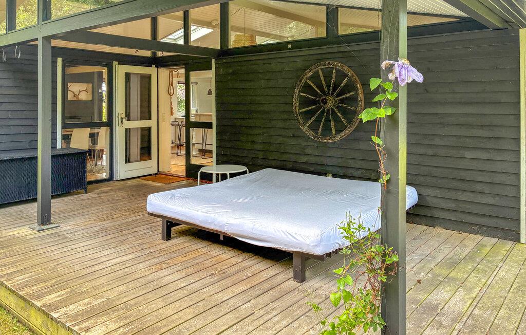Tilbring afslappende timer på husets smukke træterrasser. Tag plads i loungeområdet, tag en lur på terrassesengen eller slap af i vildmarksbadet. Den græsplænede have giver jer plads til motion, leg og afslapning for hele familien.