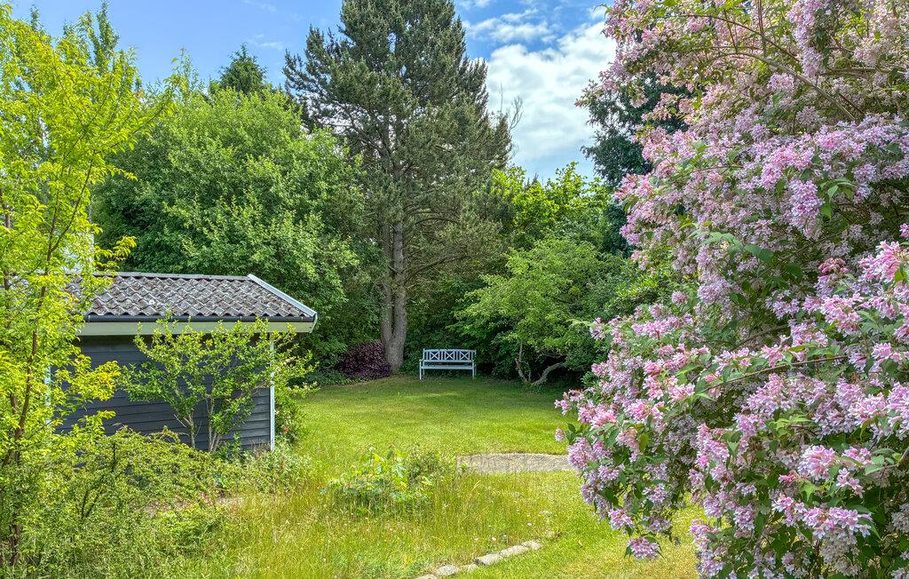 Feriehus ved Udsholt Strand med vildmarksbad og stor have til afslapning og leg.