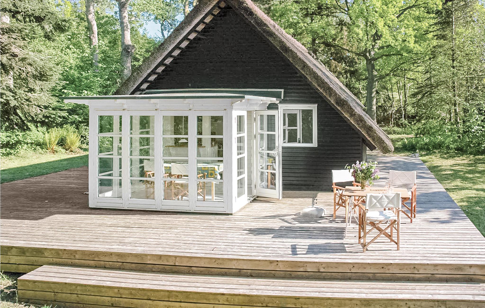 Charmerende stråtækt sommerhus nær Kattegat med privat sti til stranden og stor terrasse i naturskønt område.