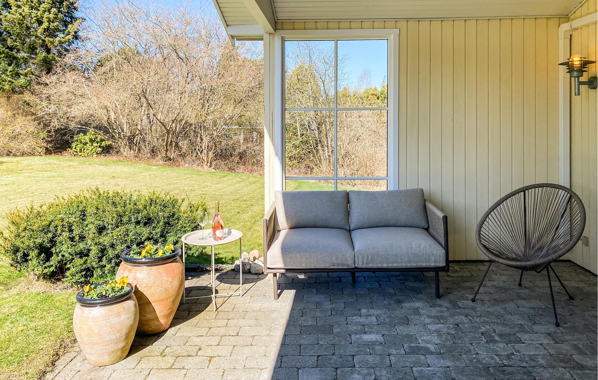 Nyd den friske luft på den overdækkede terrasse helt til aftentimerne. Tag plads ved spisebordet, læn jer tilbage i loungemøblerne, eller slik sol på liggestolene. Den store have giver god plads til både leg og afslapning og er omgivet af marker og natur. Beliggenheden for enden af en lukket vej skaber en særlig rolig atmosfære.