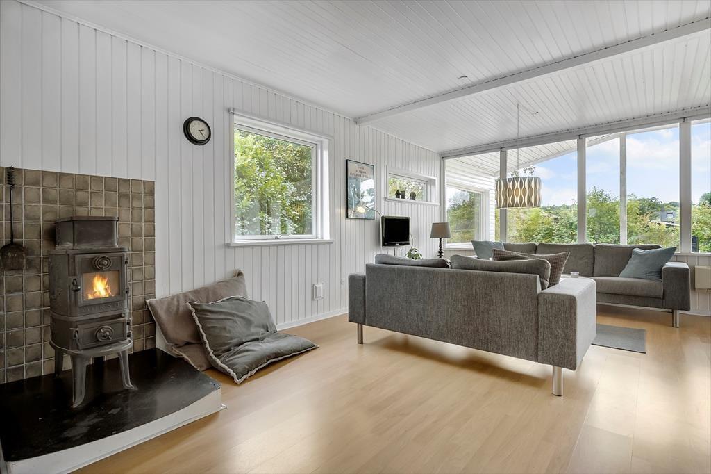 Træd ind i et charmerende og velholdt sommerhus, hvor hyggen får lov at fylde. Her finder du et klassisk køkken adskilt fra stuen – perfekt, når der skal laves mad i ro og mag. Stuen er lys og indbydende med dejlige møbler og en brændeovn, som spreder varme og stemning, især på kølige aftener. Der er god plads til op til seks personer fordelt på to soveværelser og en hyggelig hems. Huset blev delvist renoveret i 2021 og fremstår pænt og veludstyret – ideelt til afslapning året rundt.