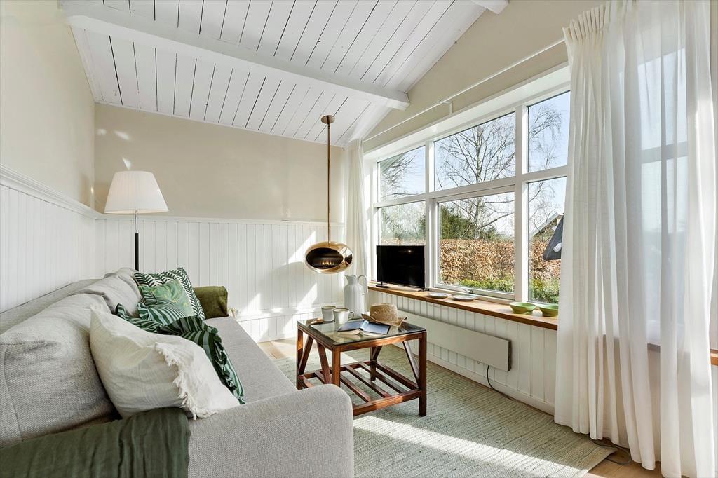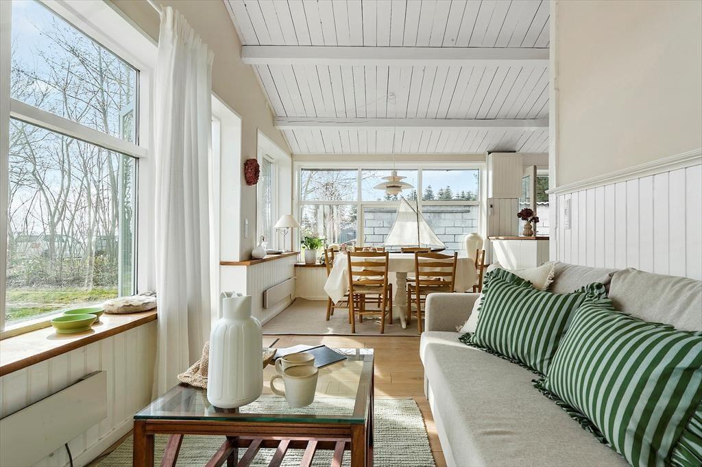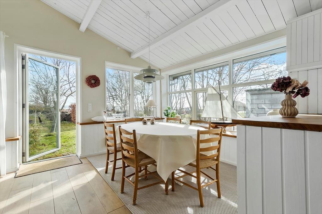Kun 50 meter fra huset finder I den børnevenlige Følle Strand, hvor I kan tilbringe lange dage med sol, sand og vand. Terrassen er det perfekte sted at nyde morgenkaffen eller et glas vin om aftenen, mens I lytter til bølgernes sagte brusen. Den 494 m² store grund giver plads til leg og afslapning, og med havudsigten som baggrund bliver hvert øjeblik en fornøjelse. Området omkring huset er fredeligt og indbyder til gåture og cykelture i den smukke natur.