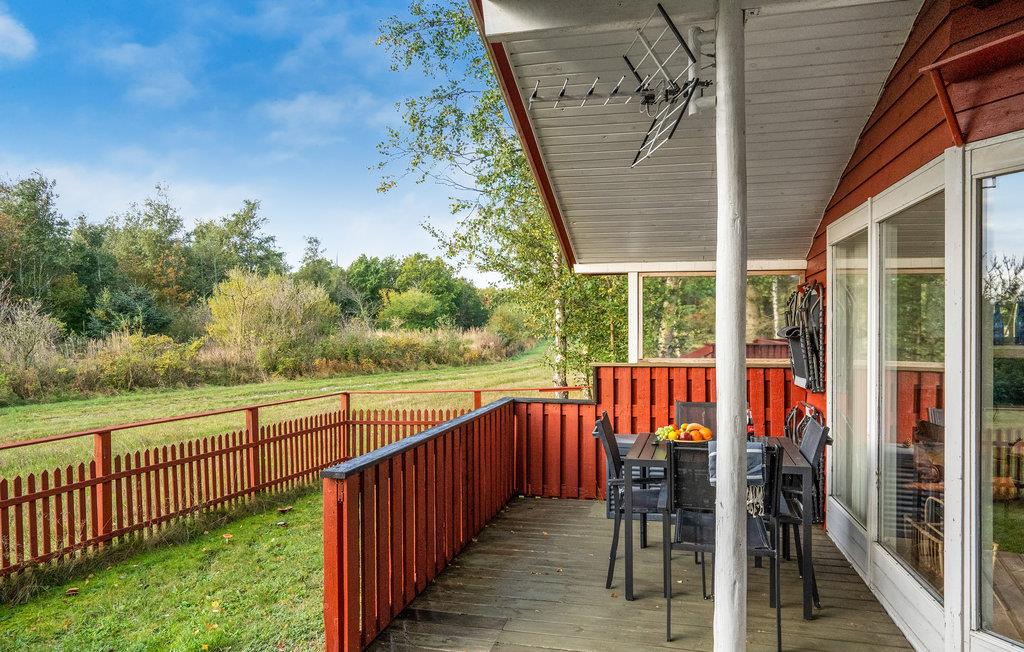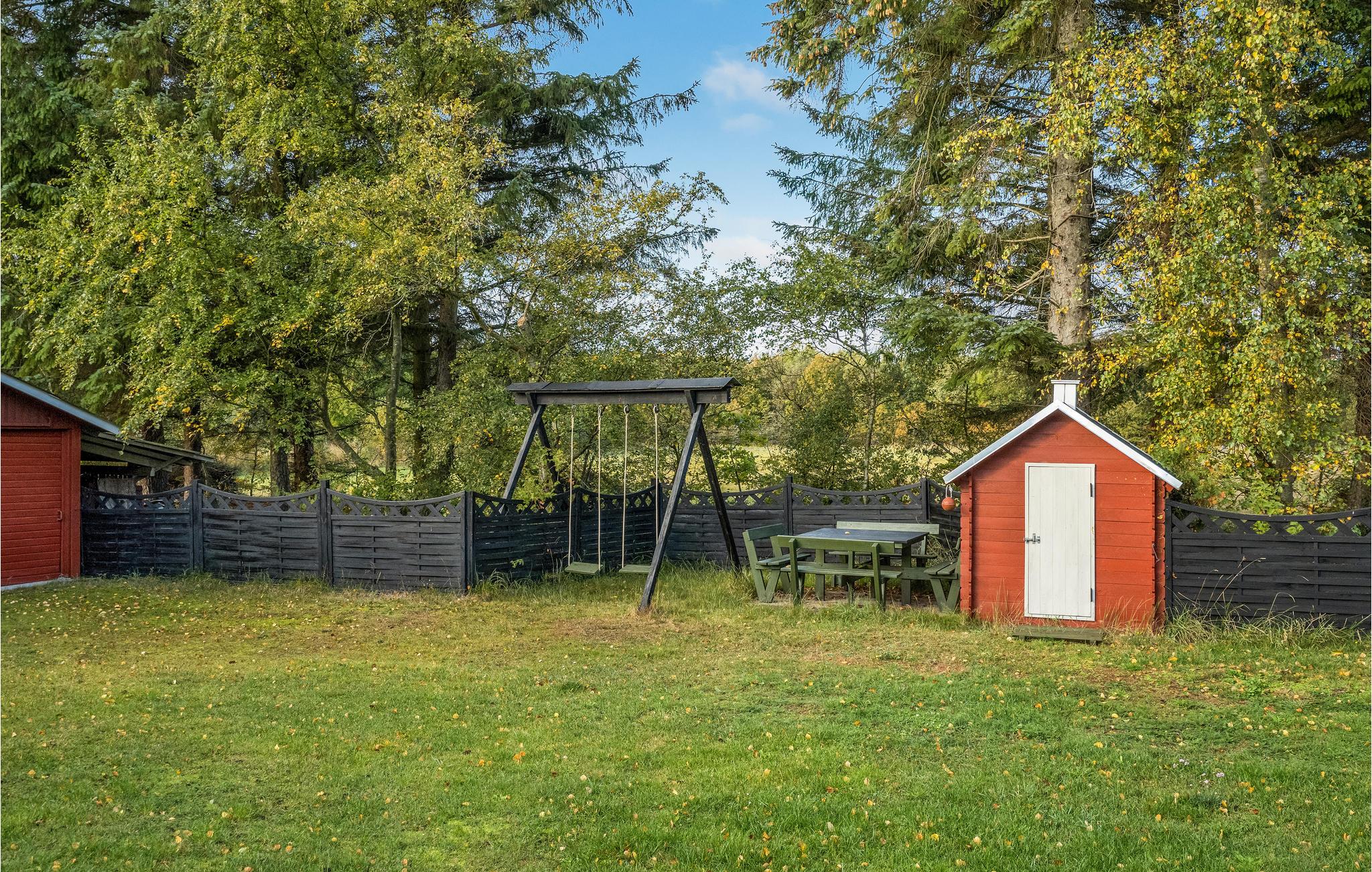 Huset ligger for enden af en stor, fælles grund med legehus og gynge. Her kan børnene slå sig løs og måske få nye venner, mens I slapper af på bænken eller på terrassen med en kop friskbrygget kaffe.