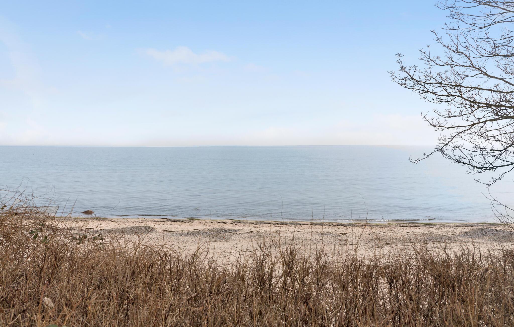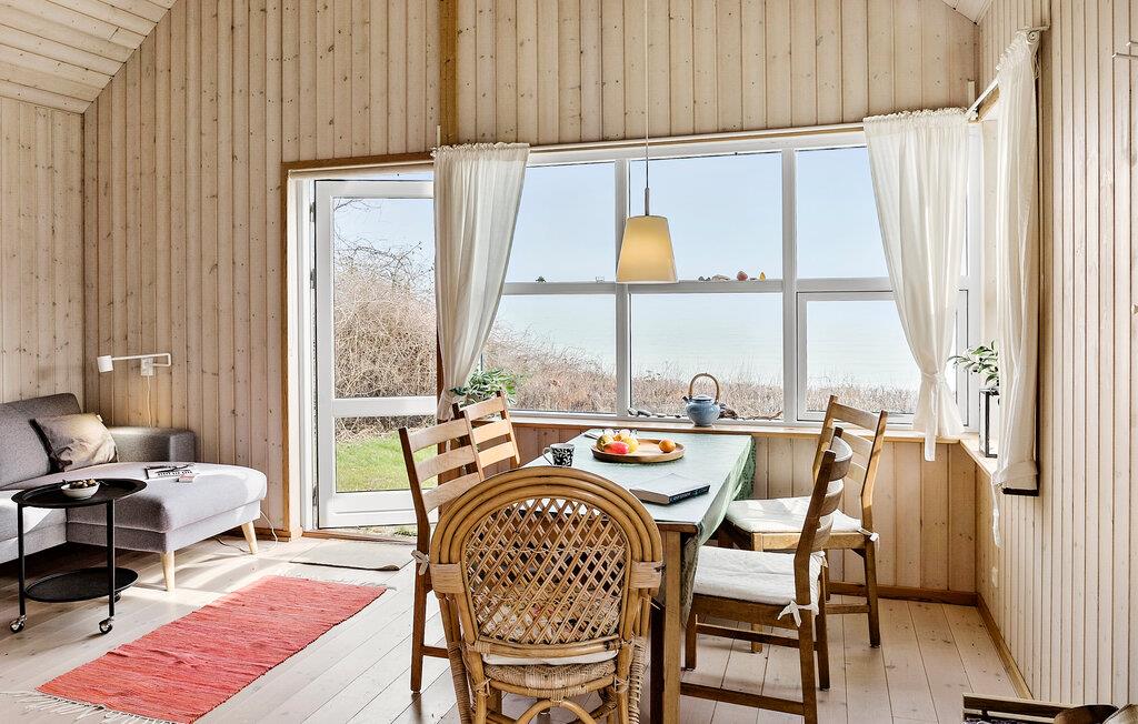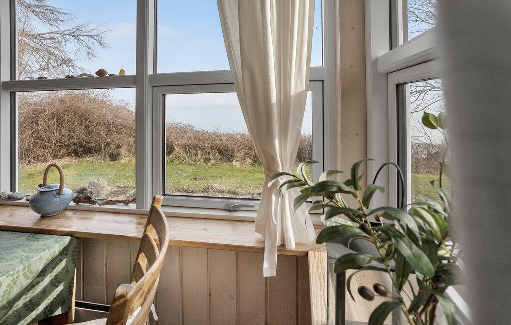 Hyggeligt træhus ved Ulslev Strand med panoramaudsigt over Østersøen og direkte adgang til stranden.