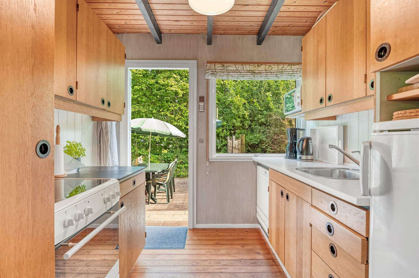 Køkkenet er udstyret med 1 køleskab. Der er 4 keramiske kogeplader, varmluftovn, mikrobølgeovn samt opvaskemaskine.