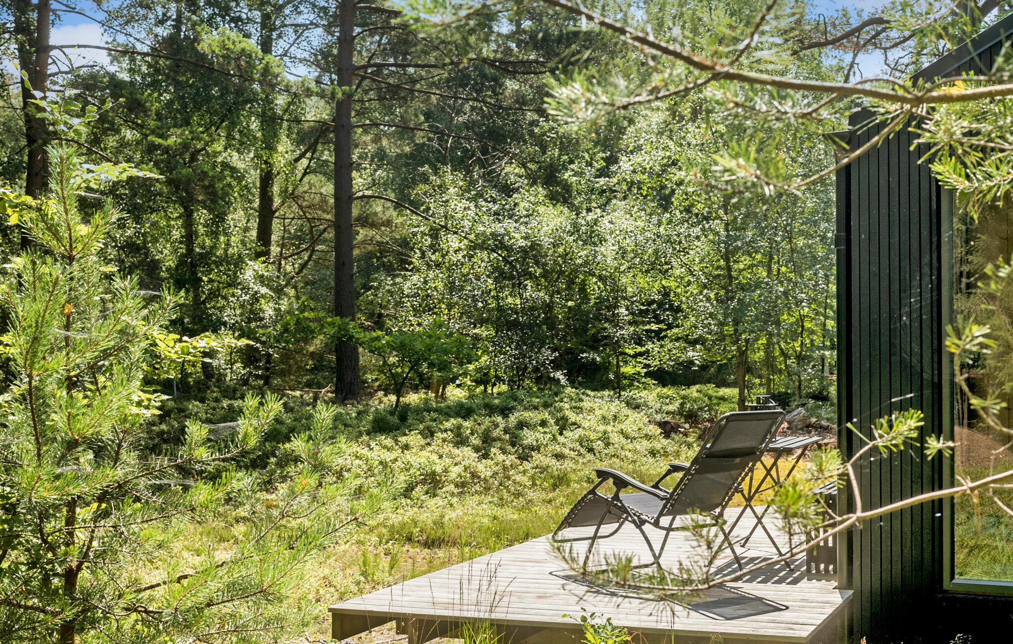 Moderne feriehus ved Ulvshale Strand med fredfyldt udsigt og tæt på skov og strand.