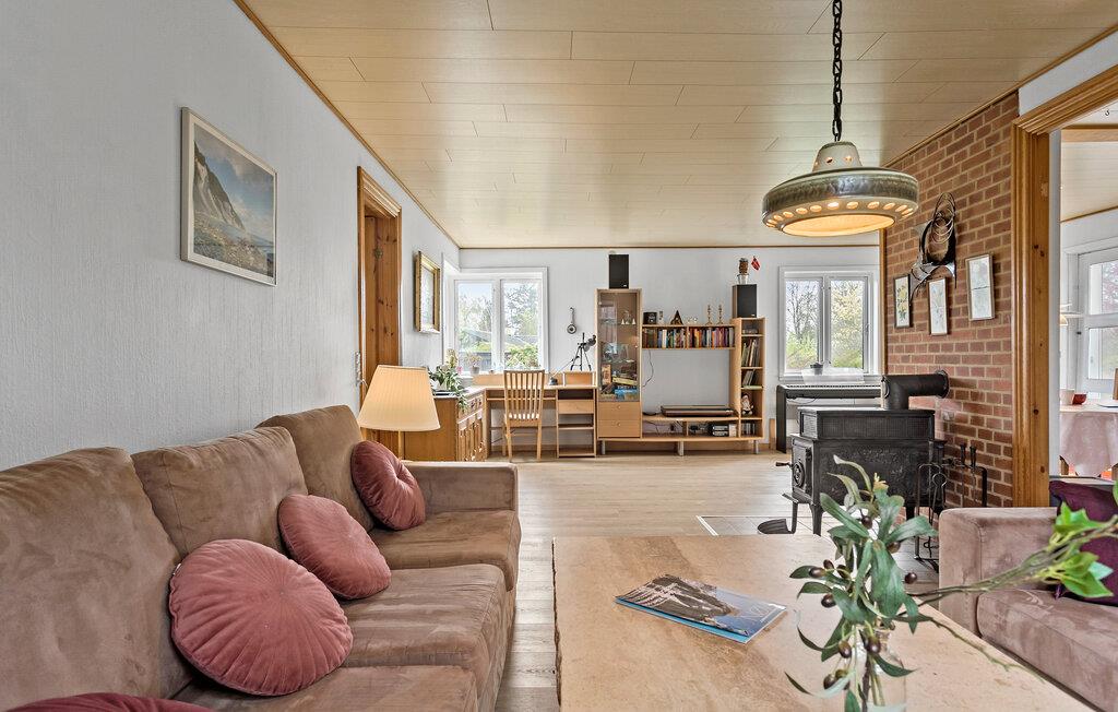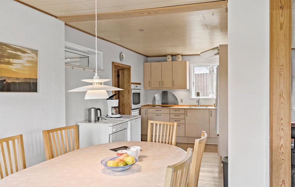 Husets hjerte er den hyggelige opholdsstue med spiseplads, køkken og stue, hvor I kan opleve mange afslappende stunder med måltider sammen, mens I laver mad eller nyder varmen fra brændeovnen. Der er også tre soveværelser med to dobbeltsenge og en køjeseng og to badeværelser.
