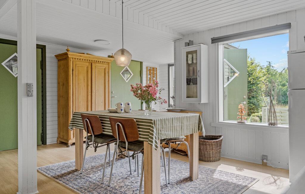 Oplev naturens fred og ro i dette sommerhus, som ligger en kort gåtur fra den fine sandstrand. Huset er lyst og charmerende indrettet med øje for detaljer og hyggelige nips. Her emmer af feriestemning, så I kan komme helt ned i gear og nyde nogle dejlige dage på Møn. Start dagen med fælles morgenmad i det store spisekøkken, og planlæg hvad I vil opleve de kommende dage. I stuen kan I svinge benene op i den bløde sofa med en god bog i hånden. Om spisebordet kan I gøre klar til spilleaften med alle jeres yndlings kort- eller brætspil og lækre snacksskåle.