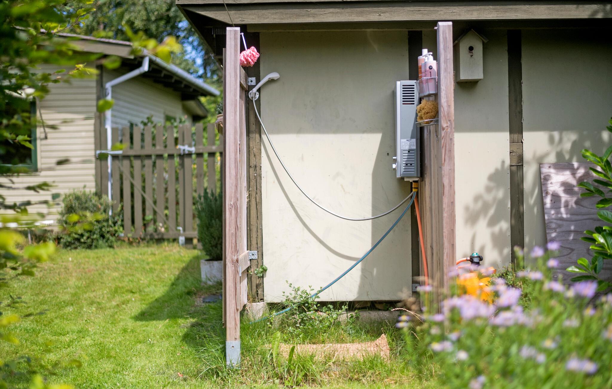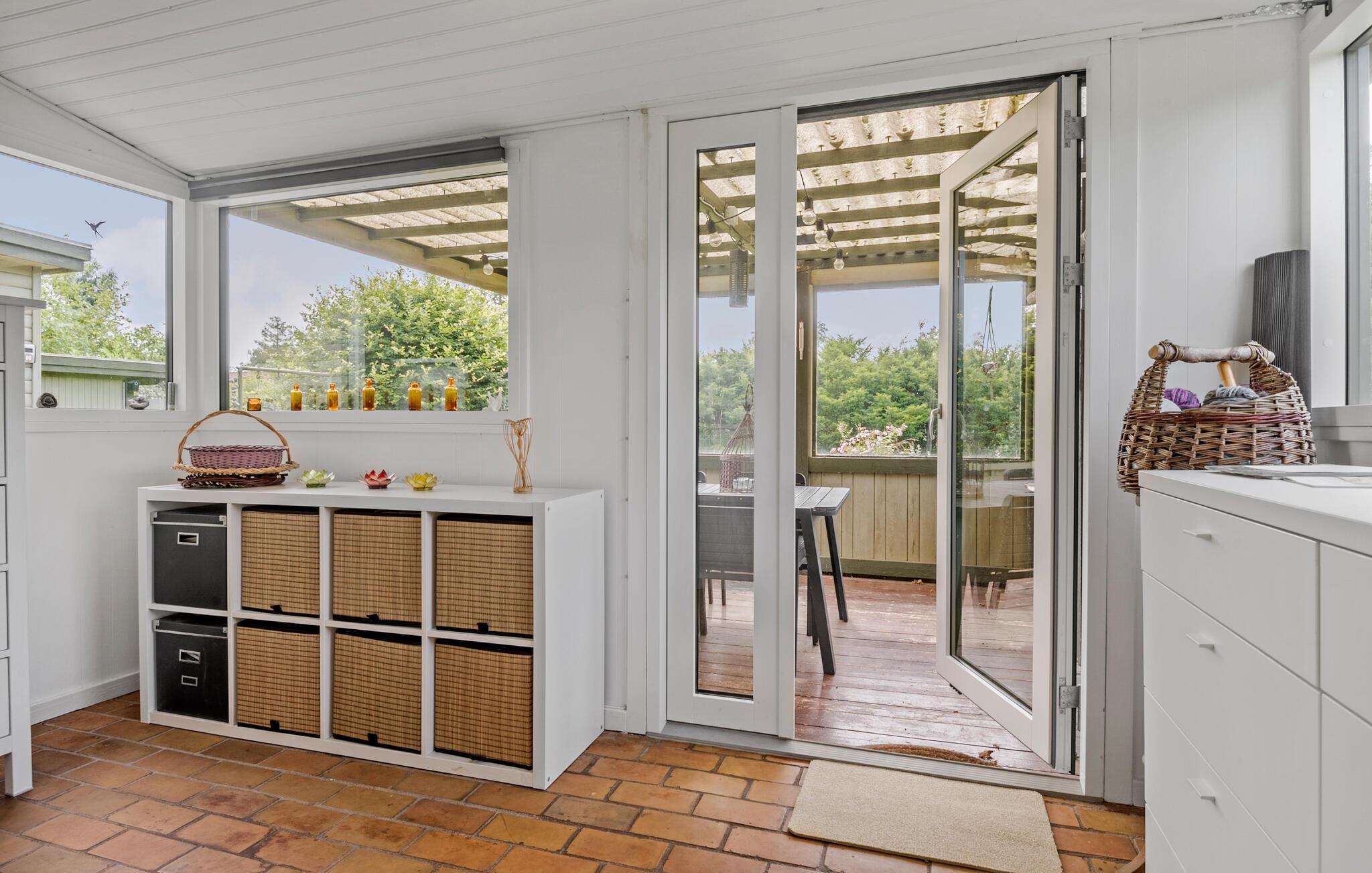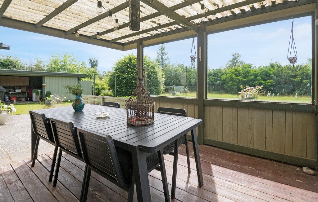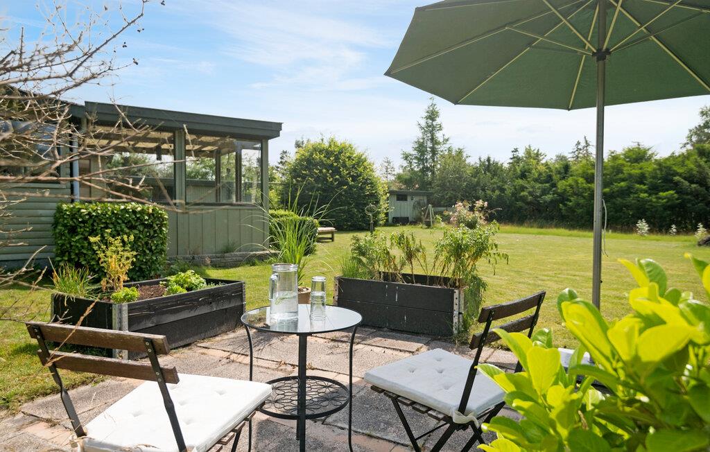 Ude på terrassen kan I nyde solen fra liggestolene, eller tænde op i grillen, så I kan spise ude under åben himmel. Haven er afskærmet af høje træer, så I kan nyde ferien i fred.