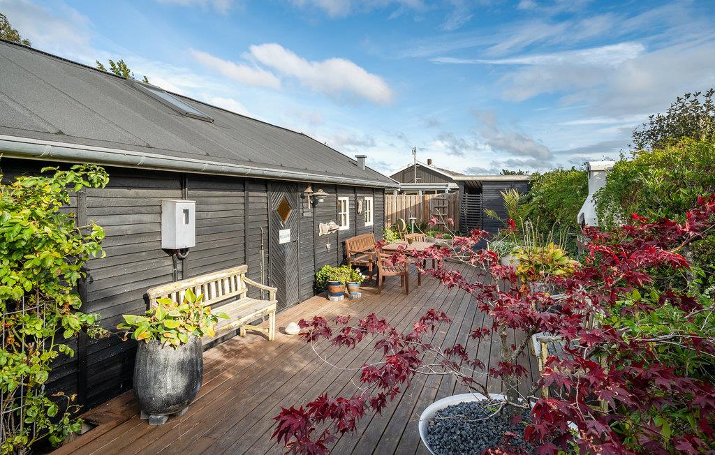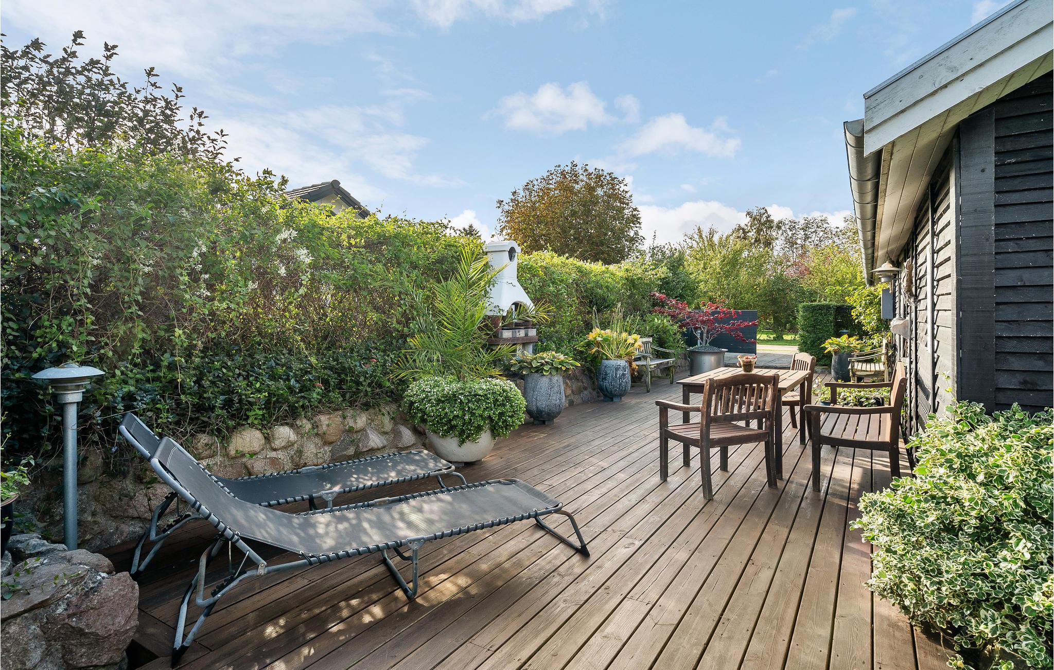 Hyggeligt sommerhus tæt på Møns Klint og strand, med lukket have og dejlig terrasse.