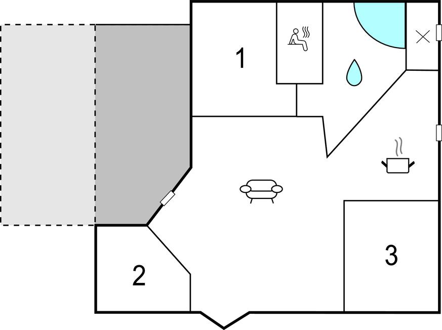 Badeværelse 6m2 (nr. 1) - WC. Varmt og koldt vand. Bruser