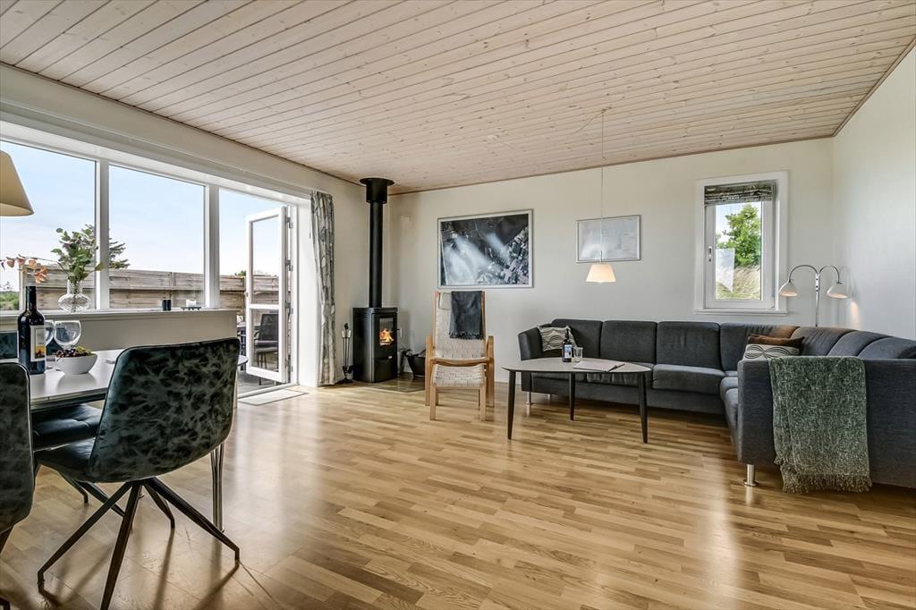 Når du træder ind i mærker du hurtigst husets charme. Huset er enkelt indrettet og med en stemning, der gør, at du straks mærker, hvordan pulsen falder. Her er ikke fokus på moderne luksus, men på nærvær, enkelhed og den ro, der opstår, når man giver sig selv lov til at leve i ét med naturen. Om aftenen kan I samles til nærværende samtaler og tænde et par stearinlys, der skaber et varmt skær i rummet. Atmosfæren gør det let at finde roen, og selv familiens hunde kan lægge sig til rette og nyde ferielivet i fredelige omgivelser.