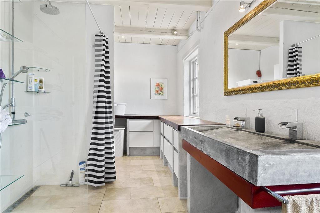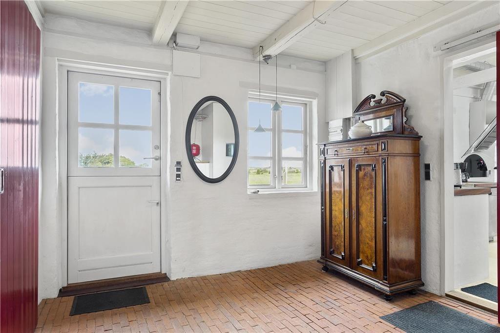 Husets udendørsområder giver masser af muligheder for at nyde den friske havluft og den storslåede udsigt. Terrassen er det perfekte sted til at starte dagen med morgenkaffen, mens solen står op over landskabet, eller afslutte aftenen med grillhygge og stjernekig. Den store grund giver plads til leg og afslapning, mens du kan høre havets brusen i baggrunden – en konstant påmindelse om, at stranden ligger kun en kort gåtur væk.