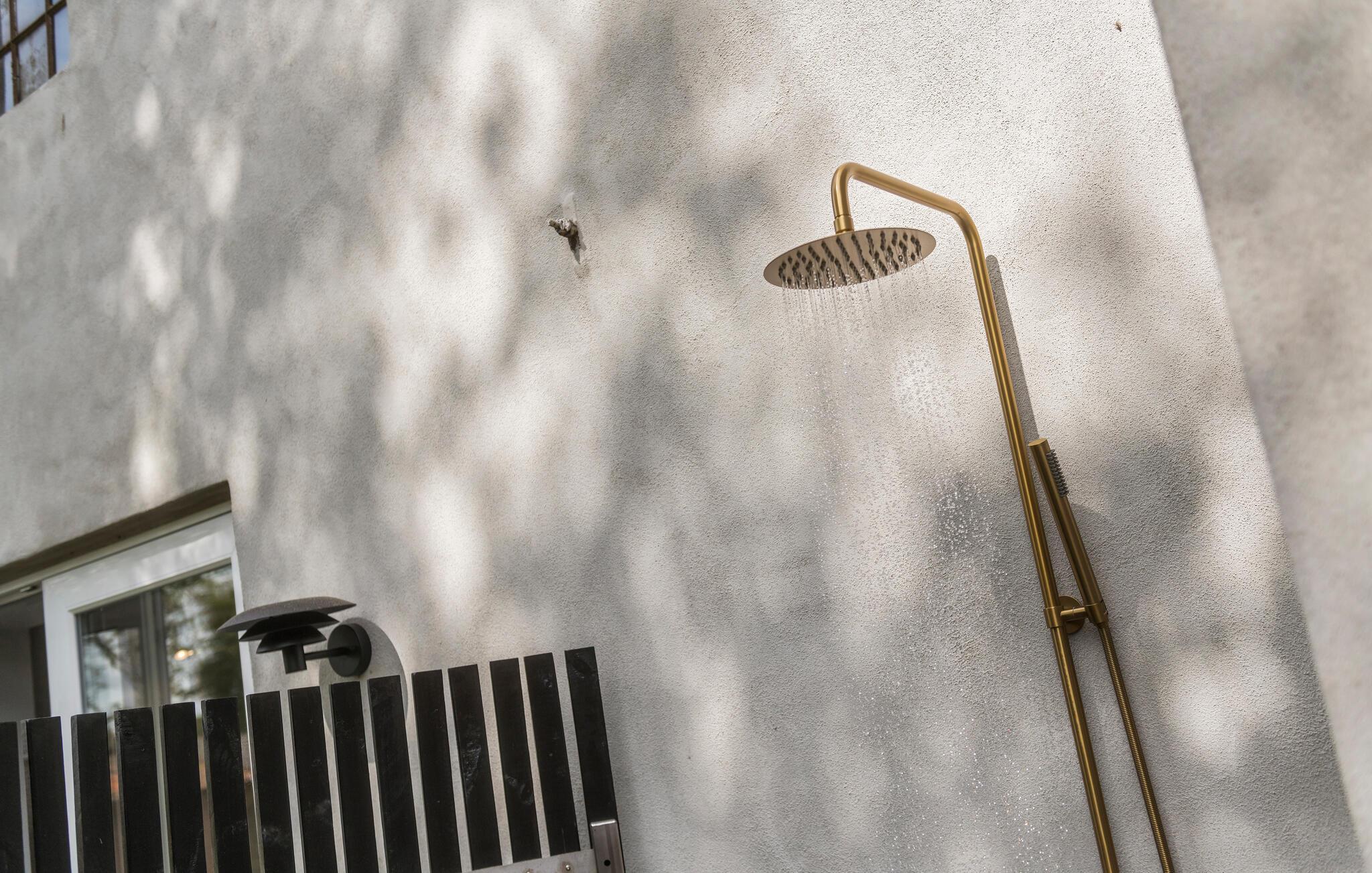 Åbner I døren til terrassen, venter der flere skønne faciliteter. Læn jer tilbage i vildmarksbadet, eller køl ned under den store udendørsbruser. I haven er der masser af plads til at lege, solbade, grille og nyde dagens måltider i det fri. I kan også fodre grisene, kaninerne og fårene, der bor på grunden.