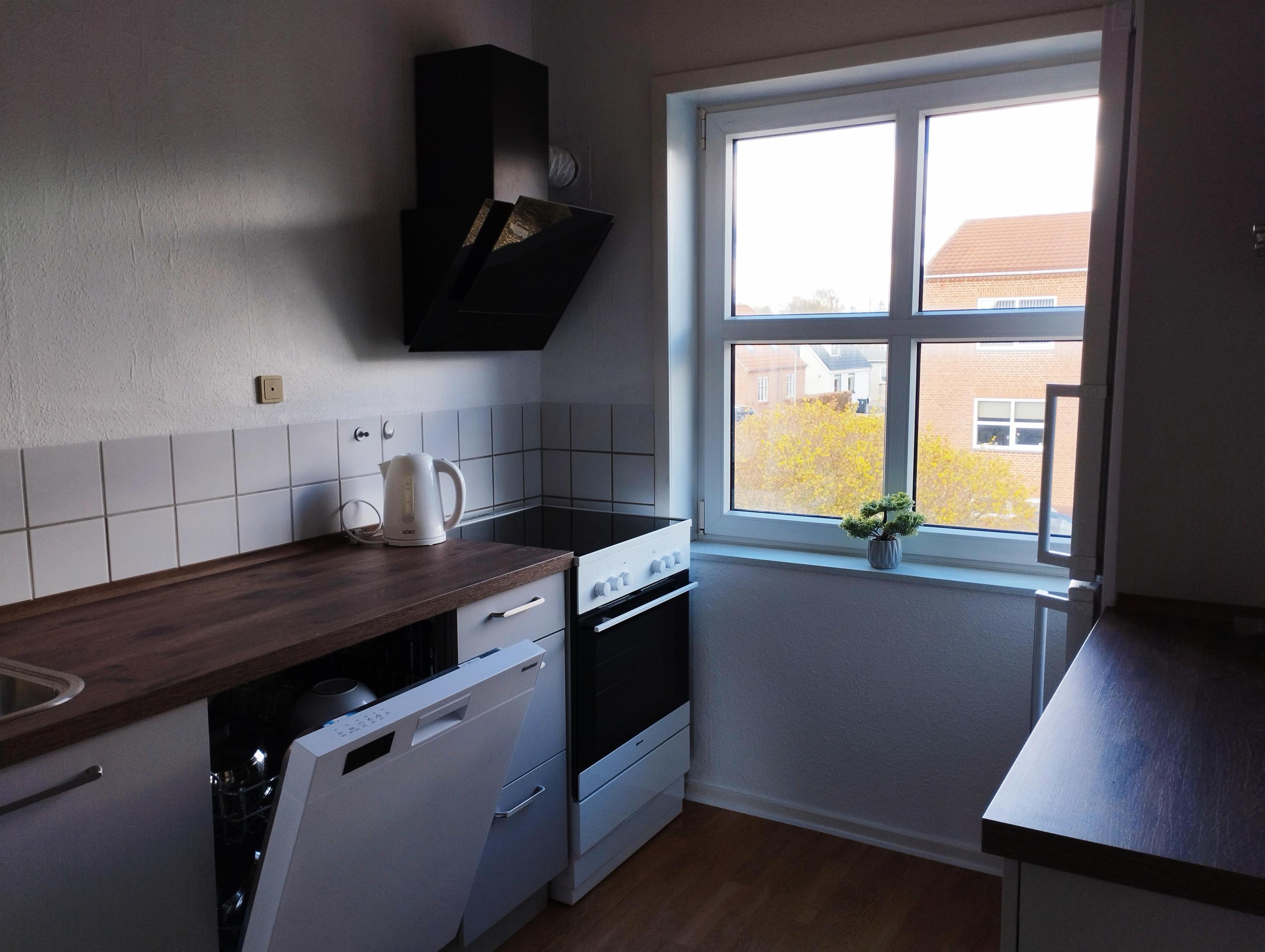 Opvaskemaskine, køl/frys, kaffemaskine, komfur og ovn.