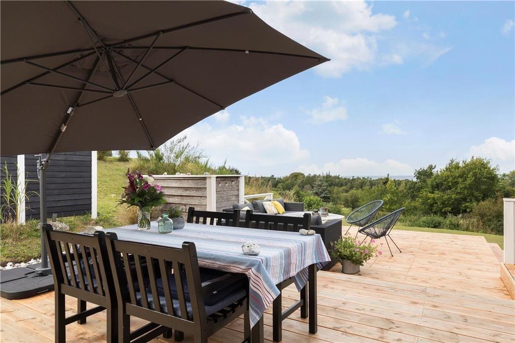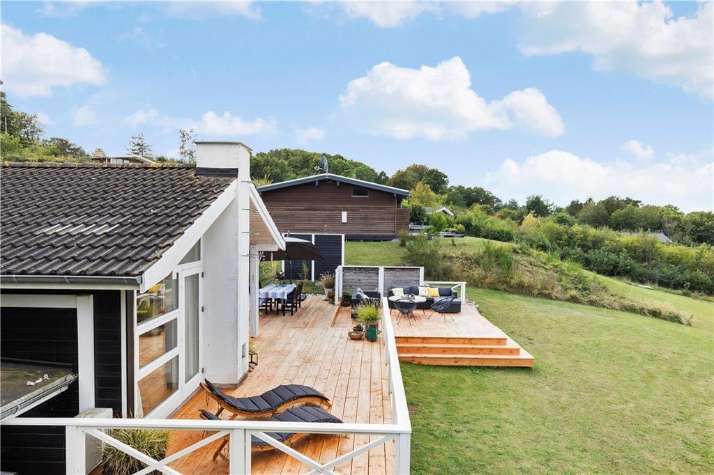 Skønt åbent og moderne køkken bl.a. med amerikansk køleskab og dejlig spiseplads, hvorfra der er en fantastisk udsigt mod havet. I den lækre stue er der både plads til afslapning og hygge. Der er 3 gode soveværelser, hvoraf der bl.a. er en høj køje/hems i de 2. Huset er også indrettet med 2 dejlige badeværelser, i det ene er der både spa og sauna. Både fra køkken og stue er der udgang til husets skønne terrasse, her kan du nyde solen fra morgen til aften mens børnene slår sig løs på den dejlige naturgrund. Ungdomsgrupper er ikke velkomne.