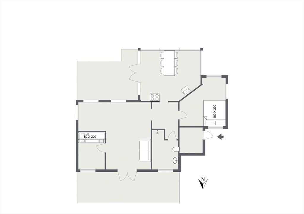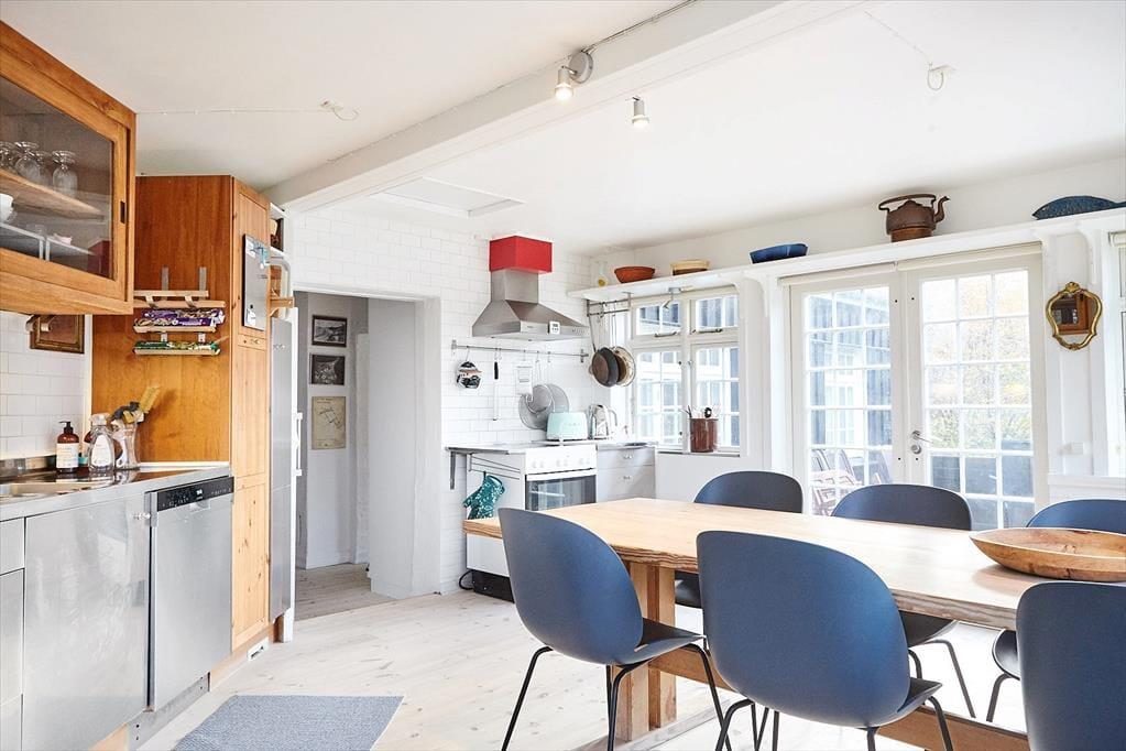 Skønt åbent og moderne køkken med dejlig spiseplads, her er der plads nok til at alle kan hjælpes med tilberedningen af en god frokost. Der er et stort master bedroom og et soveværelse mere samt et dejligt badeværelse med brus. Huset er udstyret med central støvsuger og flere skønne terrasser, hvor I kan nyde solen fra morgen til aften. Husk også at du kan benytte dig af udekøkkenet.