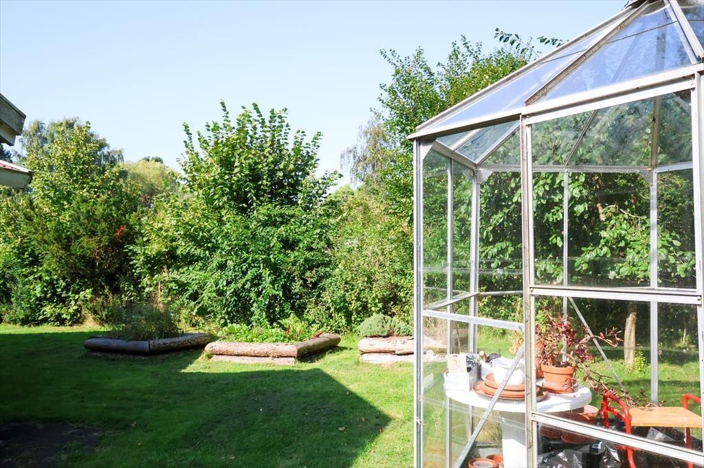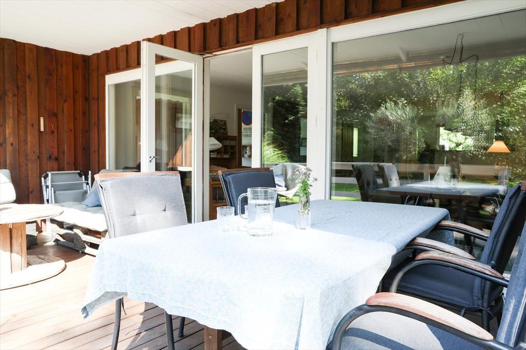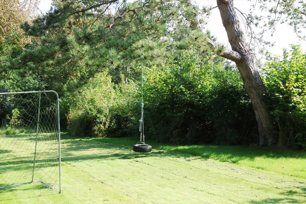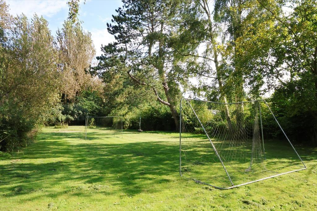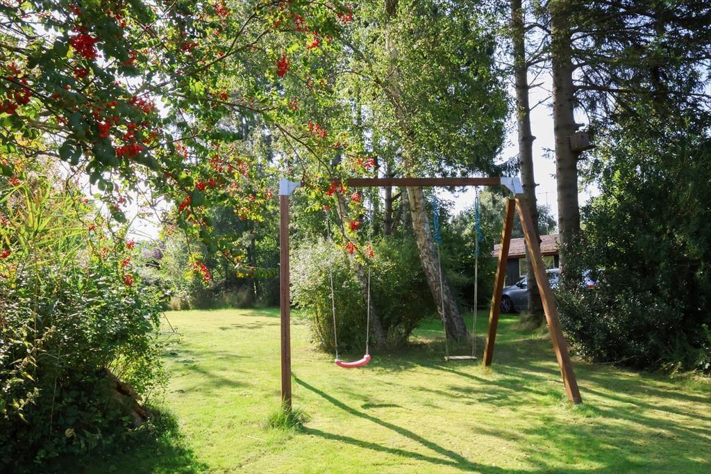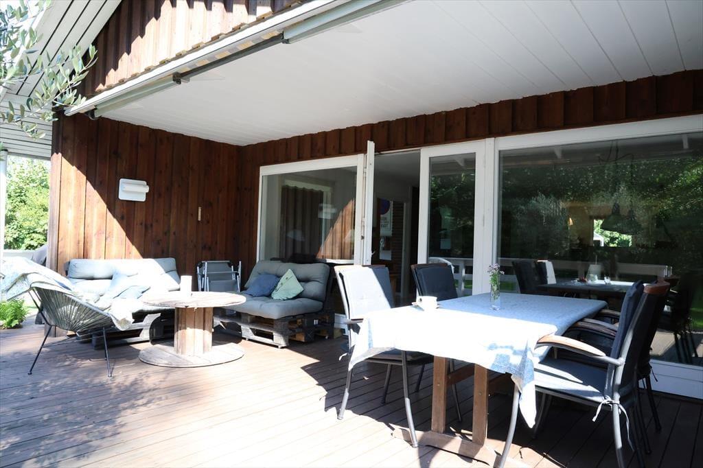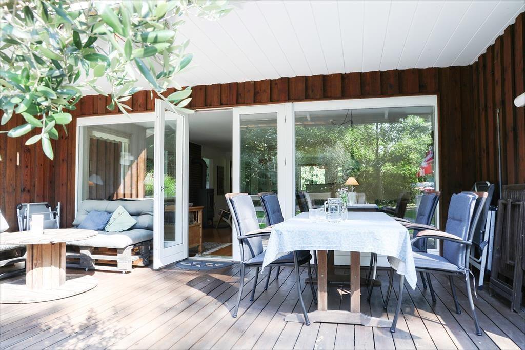 Udendørs er der masser af plads at boltre sig på, der er god plads til udendørs aktiviteter for både børn og voksne, her kan der hygges med medbragte havespil eller spilles en fodboldkamp. Skal det bare være ren og skær afslapning, så kan solen nydes terrassen. Bliver solen for meget er der en god overdækket terrasse med direkte adgang fra stuen. Når aftenen falder på, kan der tændes op i bål stedet og hygges med snobrødsbagning.