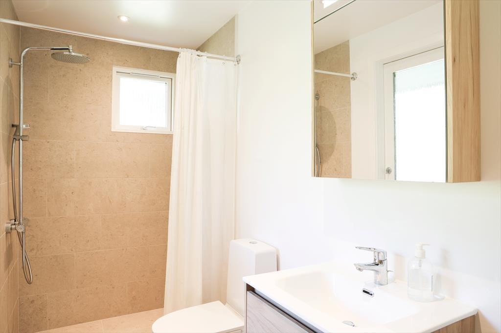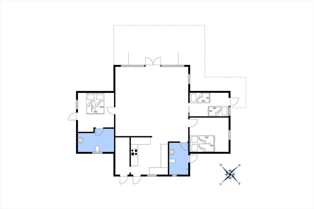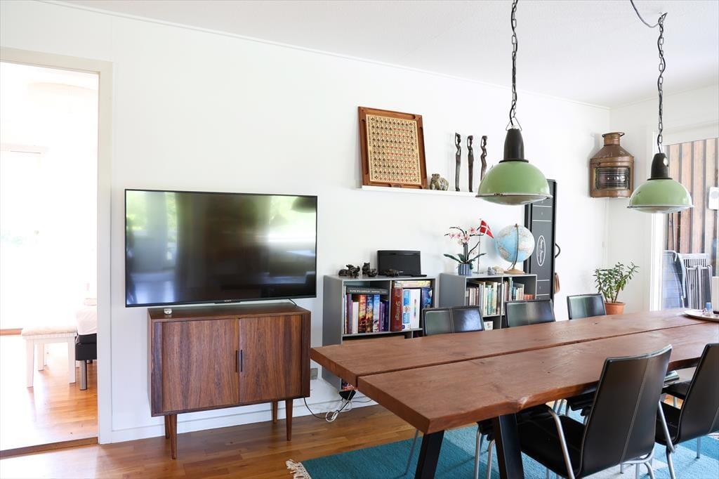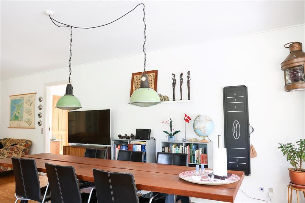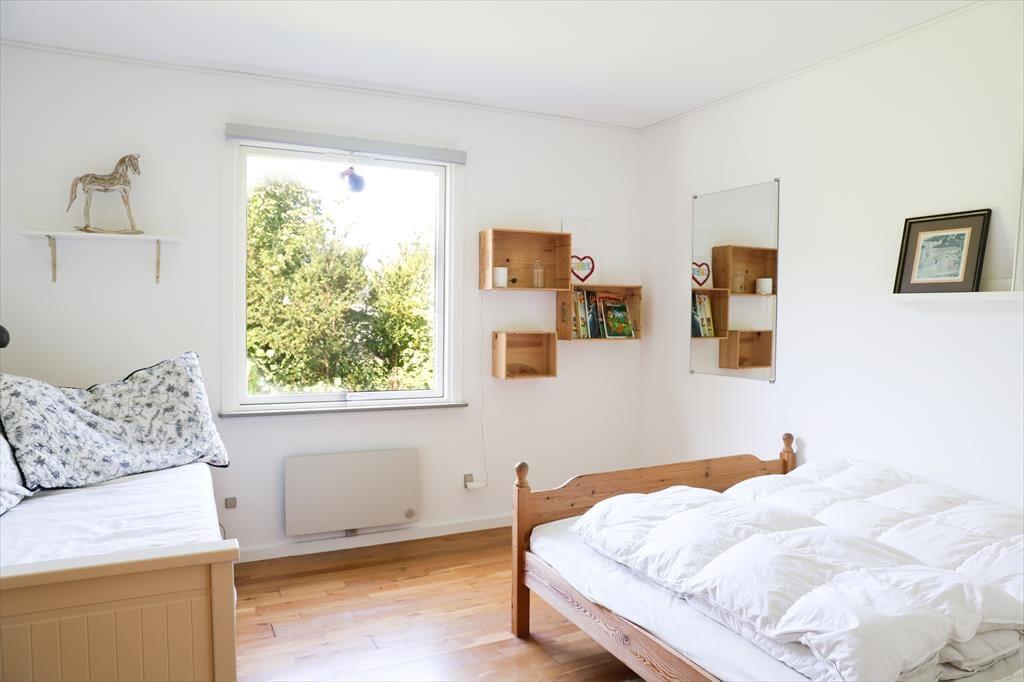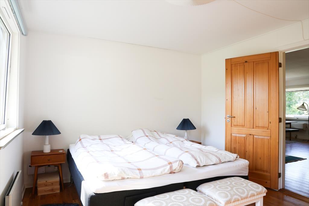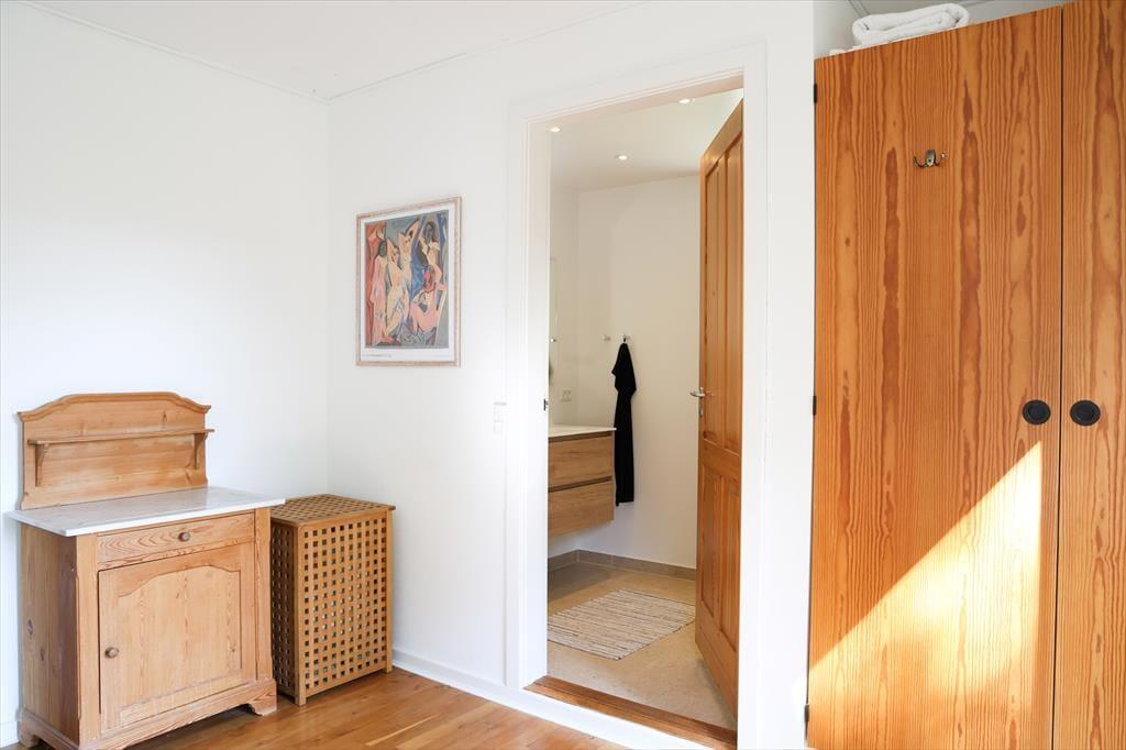 Når I træder ind i dette sommerhus, fornemmes straks rummeligheden med god plads til alle. Der er mange gode hyggekroge hvor der kan slappes af med en podcast eller en god bog med musik i ørene. I køkkenet er der rig mulighed for at være fælles om madlavningen, der er nemlig god plads. Sommerhusets hjerterum er den store stue med sofagruppe og god spiseplads, her kan alle samles om bordet til aftenhygge og planlægning af morgendagens aktiviteter. Sommerhuset har desuden 2 nyrenoverede og flotte badeværelser, hvoraf masterbedroom har direkte adgang til det ene badeværelse.