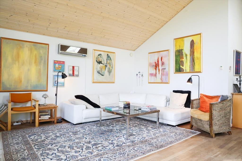 Dette lækre sommerhus er beliggende på toppen af Ordrup. Her er der mulighed for både at gå og cykle i de omkringliggende bakker.