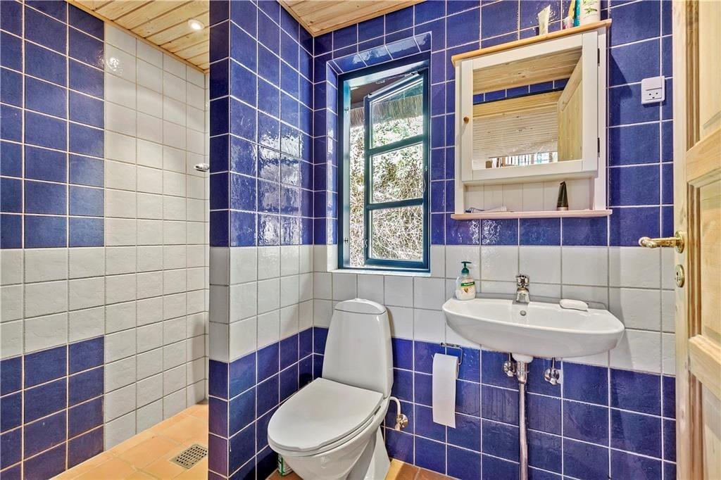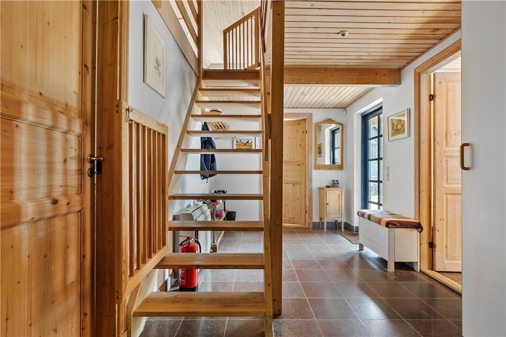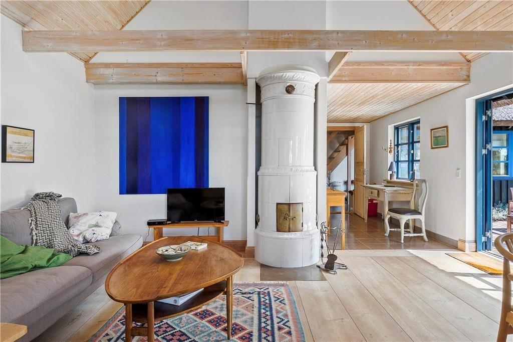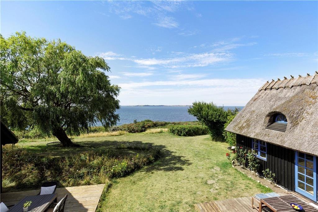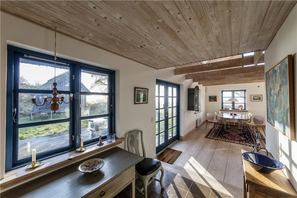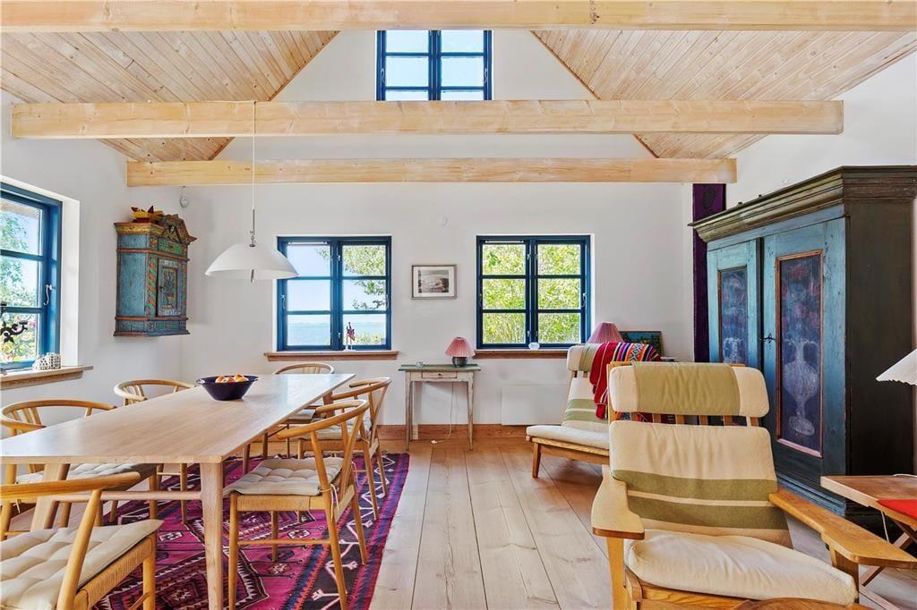 Du vil føle dig hensat til en anden tidsalder i den pragtfulde dagligstue med fritlagte bjælker og loft til kip, den gammeldags porcelænskakkelovn og stort spisebord, hvorfra du kan se ud over Sejerø Bugten og Nekselø. I det hyggelige landkøkken vil du nyde at brygge kaffen og forberede morgenmaden og de andre måltider til familien. Efter en god travetur eller en dag ved stranden er det skønt at indtage husets sauna, inden du går til ro i et af de hele seks soveværelser i den stråtækte ejendom i to plan.