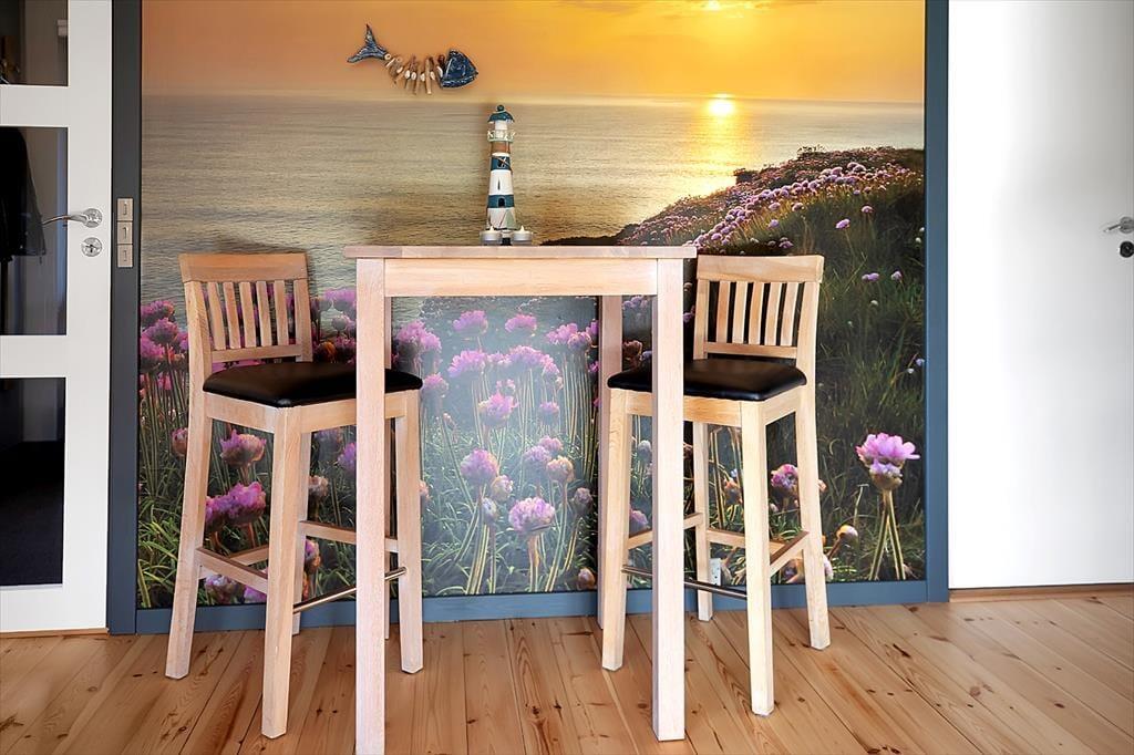 Særdeles hyggelig stue hvor du kan nyde en kaffe, fordybe dig i en god bog eller I kan spille et slag kort med børnene. Skønt åbent køkken med mulighed for at hjælpes med tilberedning af en god frokost samt fire fine soveværelser, de to med dobbeltsenge, de to med enkeltsenge. Samt dejligt badeværelse med brus. Endvidere er der adgang til nydeligt skur med toilet og vaskemaskine. Husk også at benytte husets dejlige terrasse, der er opdelt i både en overdækket og en åben afdeling. Her er det oplagt at komme et par gode bøffer på grillen, hælde et glas bobler i glasset eller bare nyde solen og udsigten over den dejlige grund. Efter en skøn dag på stranden har du mulighed for at tage dig et bad under husets udebruser.