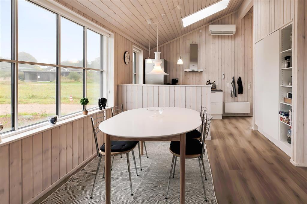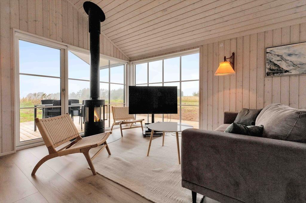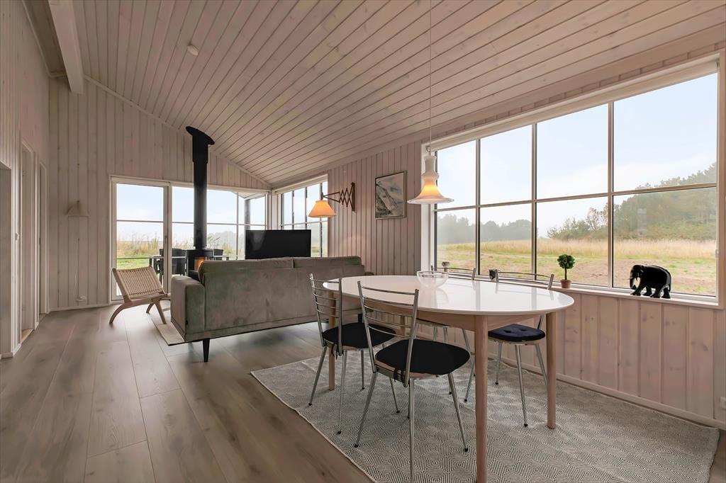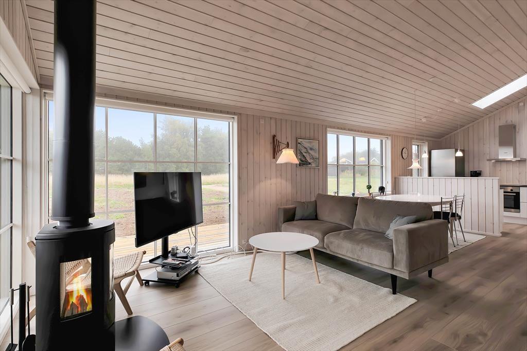I sommerhuset, vil du med det samme få følelsen af at være velkommen. Du vil hurtigt få skuldrene ned og mærke, at det endelig er tid til ferie. I den skønne stue, der er placeret i forbindelse med det åbne køkken, kan I samles ved sofaarrangementet til et brætspil mens ilden syder i brændeovnen. Hvis du sørger for frokosten, så husk at kigge op, for ovenlysvinduet vil give dig følelsen af, at du bare er i et med naturen.