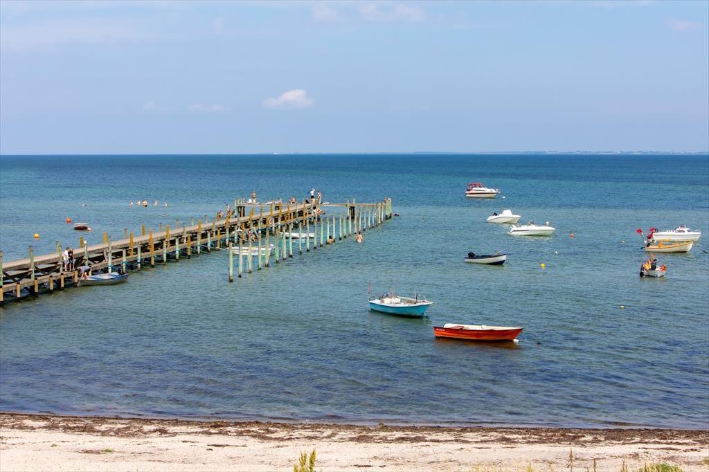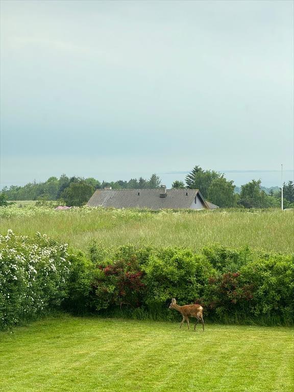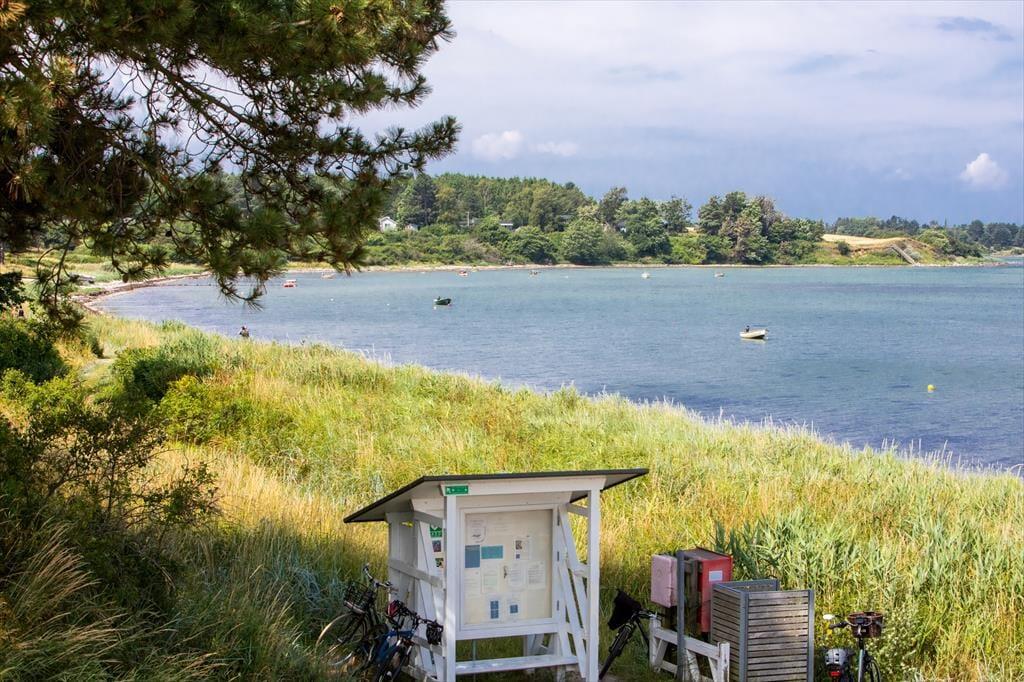 Sommerhuset ligger kun en kort køretur fra Ordrup strand, der er en perfekt sandstrand. Her kan I både bade direkte fra strandkanten eller hoppe i vandet fra badebroen. Dine børn vil elske at bygge sandslotte eller fiske små rejer, mens du lytter til havet. På den skønne terrasse, kan du ligge og nyde solen imens du lytter til fuglenes sang eller du kan være heldig, at se et rådyr løbe forbi. Børnene vil sætte stor pris på at hoppe i trampolinen eller måske kunne I alle deltage i en fodboldkamp. Om aftenen er det bare virkelig hyggeligt at varme snobrød over bålstedet.