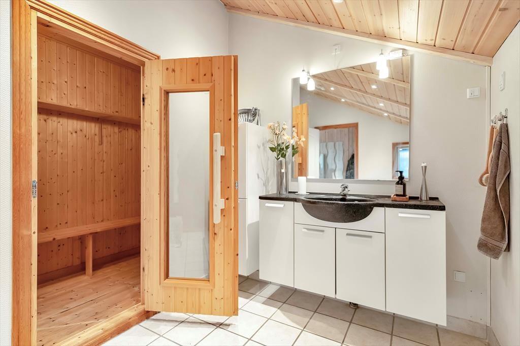 Hvis du trænger til at komme ned i gear og forkæle dig selv med både spabad og sauna, så er dette skønne sommerhus bestemt noget for dig.