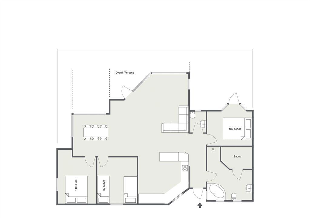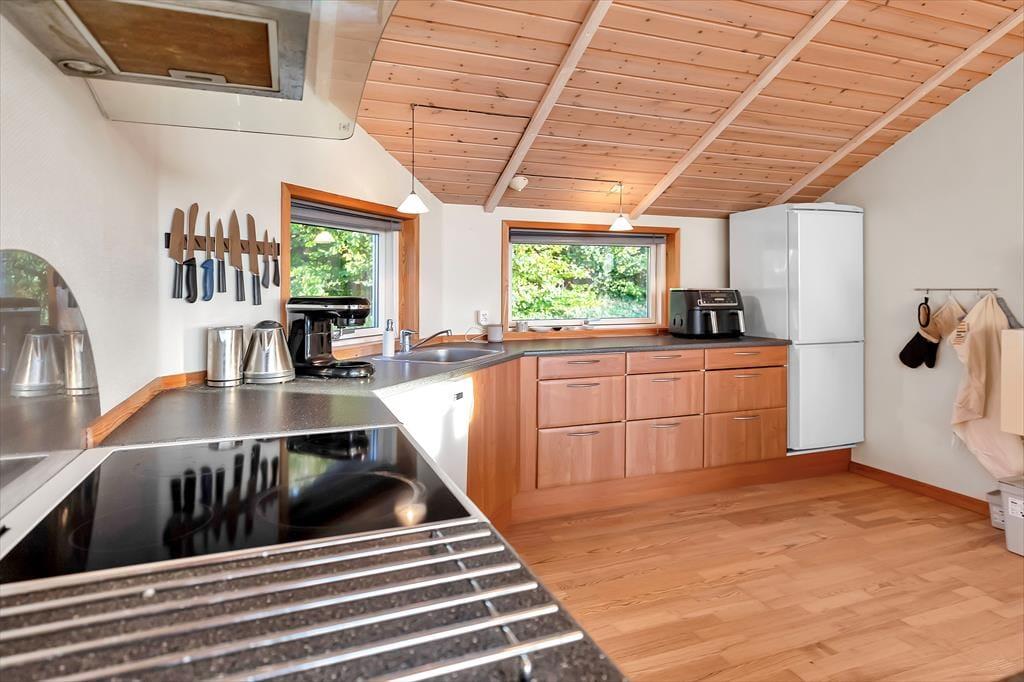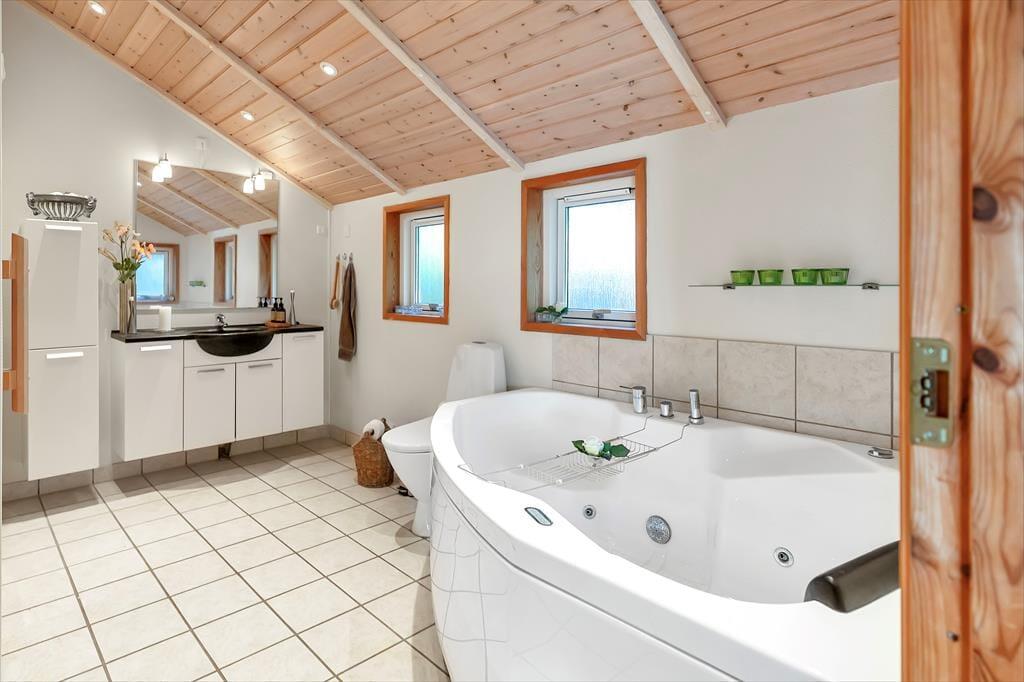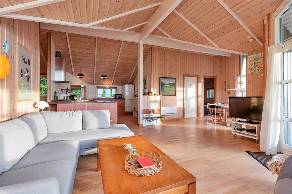 I sommerhuset, vil du med det samme få følelsen af at være velkommen. Du vil hurtigt få skuldrene ned og mærke, at det endelig er tid til ferie. I den skønne stue, der er placeret i forbindelse med det store åbne køkken, kan I samles ved sofaarrangementet til et brætspil. Hvis du sørger for frokosten, så husk at kigge ud mod havet, der viser sig i horisonten. Efter en skøn dag på den dejlige strand kan et afslappende bad i spaen eller en tur i saunaen bestemt anbefales.